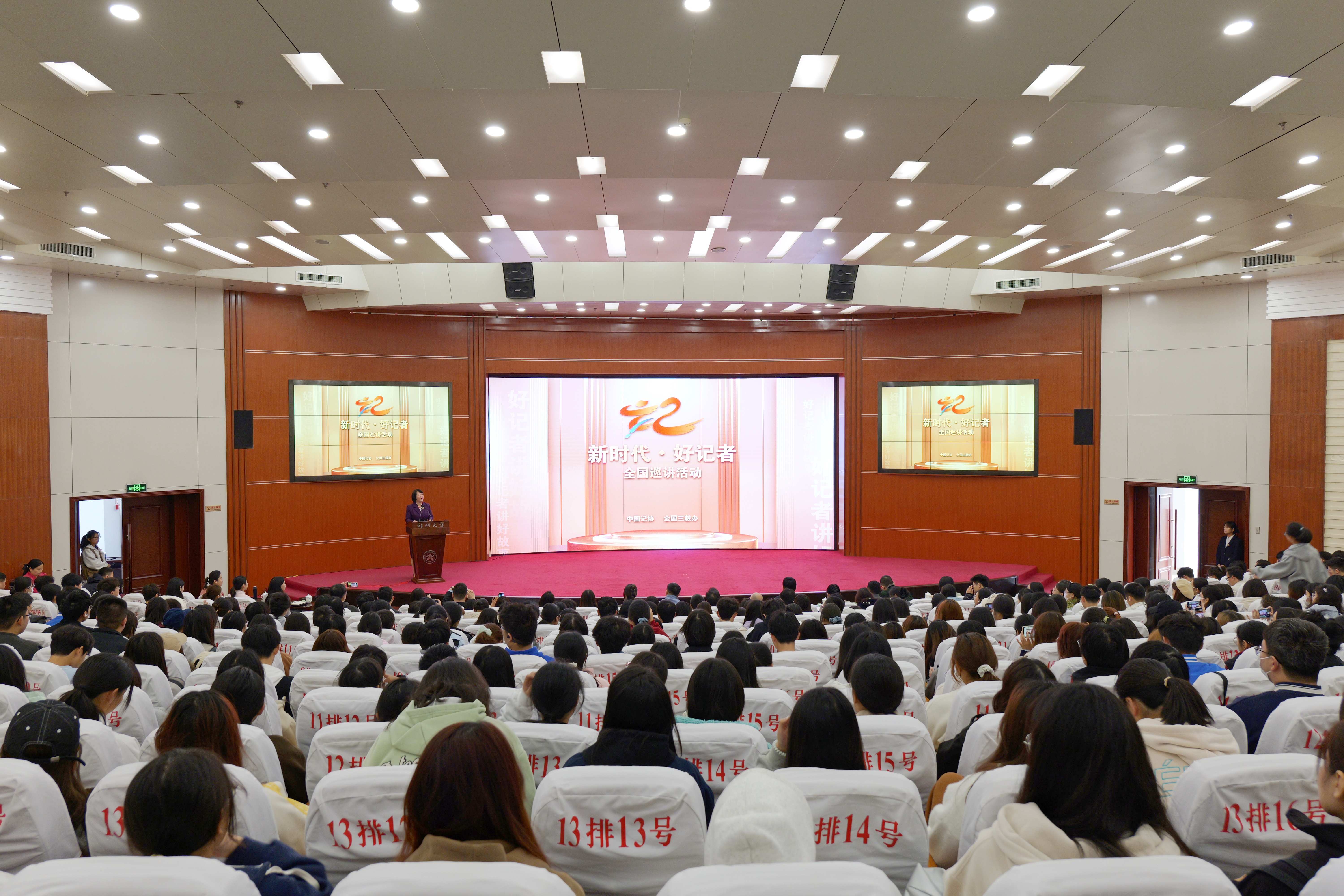 11月10日,由中国记协、全国三教办主办的“新时代·好记者”全国巡讲活动走进pp电子官方网站。8位“好记者讲好故事”优秀记者和中国新闻奖、长江韬奋奖获奖者为郑大师生现场讲述了来自新闻一线的中国故事。校党委副书记王利国出席活动,中国记协、河南省委宣传部、pp电子官方网站相关部门负责同志,新闻与传播学院、文学院、马克思主义学院部分师生、新华社-pp电子官方网站穆青研究中心部分专家代表等500余人参加活动。本次活动由pp电子官方网站党委宣传部、新闻与传播学院承办。