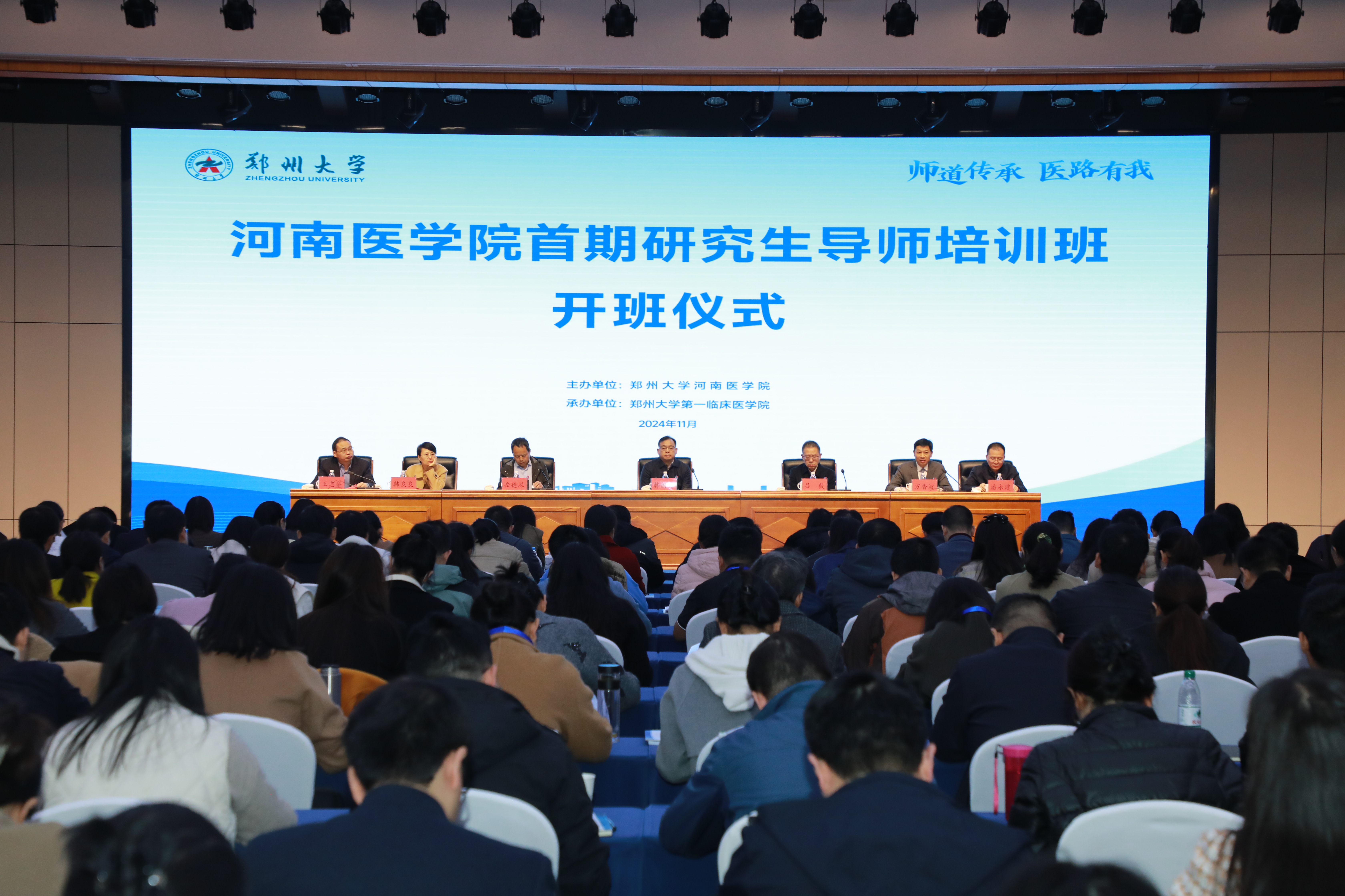 为进一步加强医学研究生导师队伍建设,提升医学研究生导师科研与育人的协同发展能力,近日,pp电子官方网站河南医学院举办“师道传承 医路有我”首期研究生导师培训班。西安交通大学党委常委、副校长吕毅,河南省教育厅学位与研究生教育处处长岳德胜,校党委副书记、工会主席、河南医学院党委书记韩国河出席开班仪式,河南医学院所属研究生培养单位的200余名新晋导师参加培训。