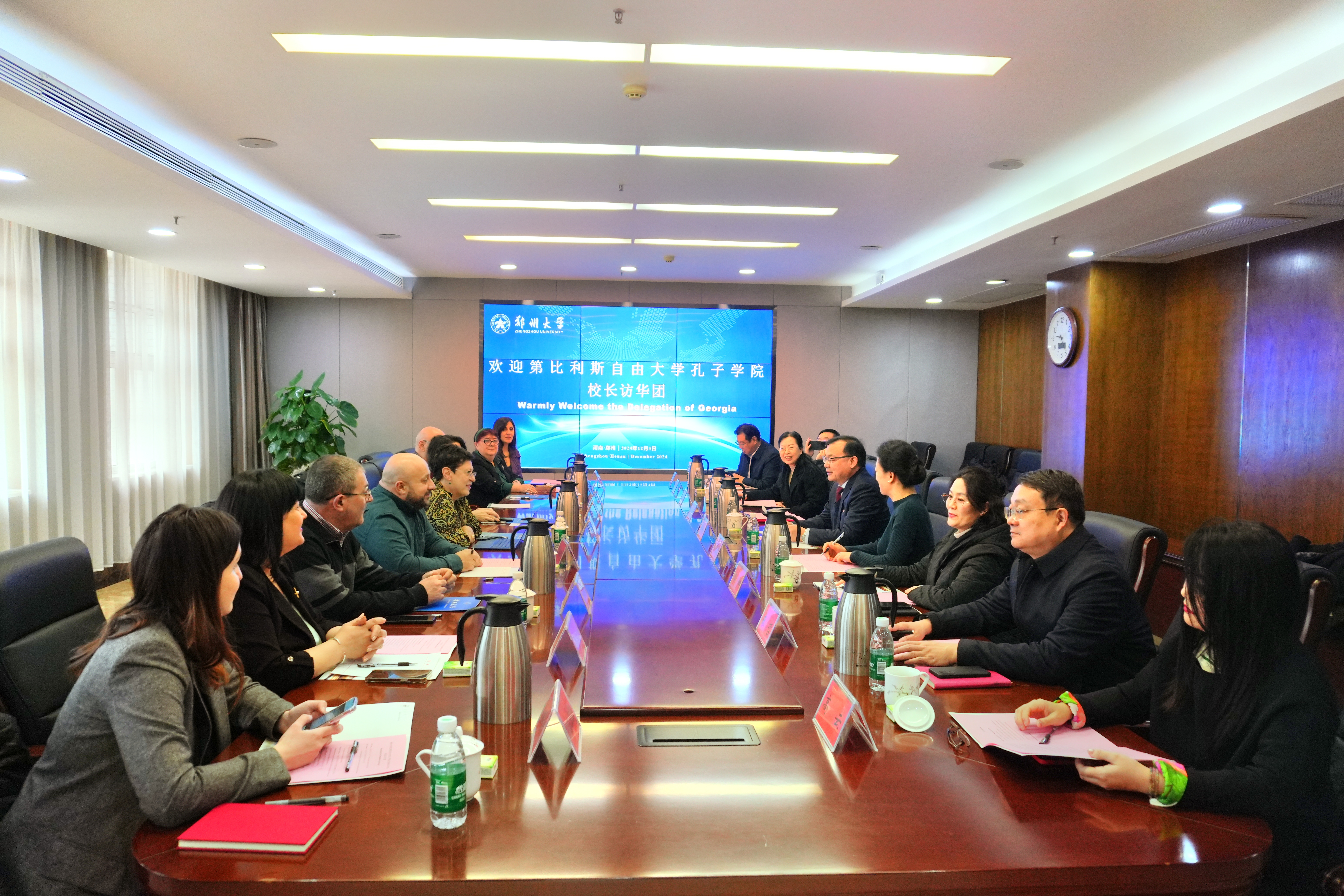 韩国河代表学校向格鲁吉亚校长代表团的到来表示热烈欢迎并介绍了学校的历史沿革、专业设置、办学特色、师生规模、国际化办学等情况。他表示,国际中文教育事业是教育强国建设的重要组成部分,是推进中外教育合作,增强中国教育国际影响力的重要途径,也是增进文明交流互鉴,助力构建人类命运共同体的重要平台。他指出,pp电子官方网站自2018年与第比利斯自由大学签署协议共建孔子学院以来,双方在推动中文国际中文教育事业、孔子学院高质量发展、中格人文交流等方面取得了显著成效。他强调,本次格鲁吉亚校长代表团访问pp电子官方网站,是pp电子官方网站与格鲁吉亚高等教育深化友好合作关系的大事,将成为中格高等教育开放与合作的典范。pp电子官方网站将继续不遗余力地支持孔院建设发展,为中格教育人文交流事业添砖加瓦。