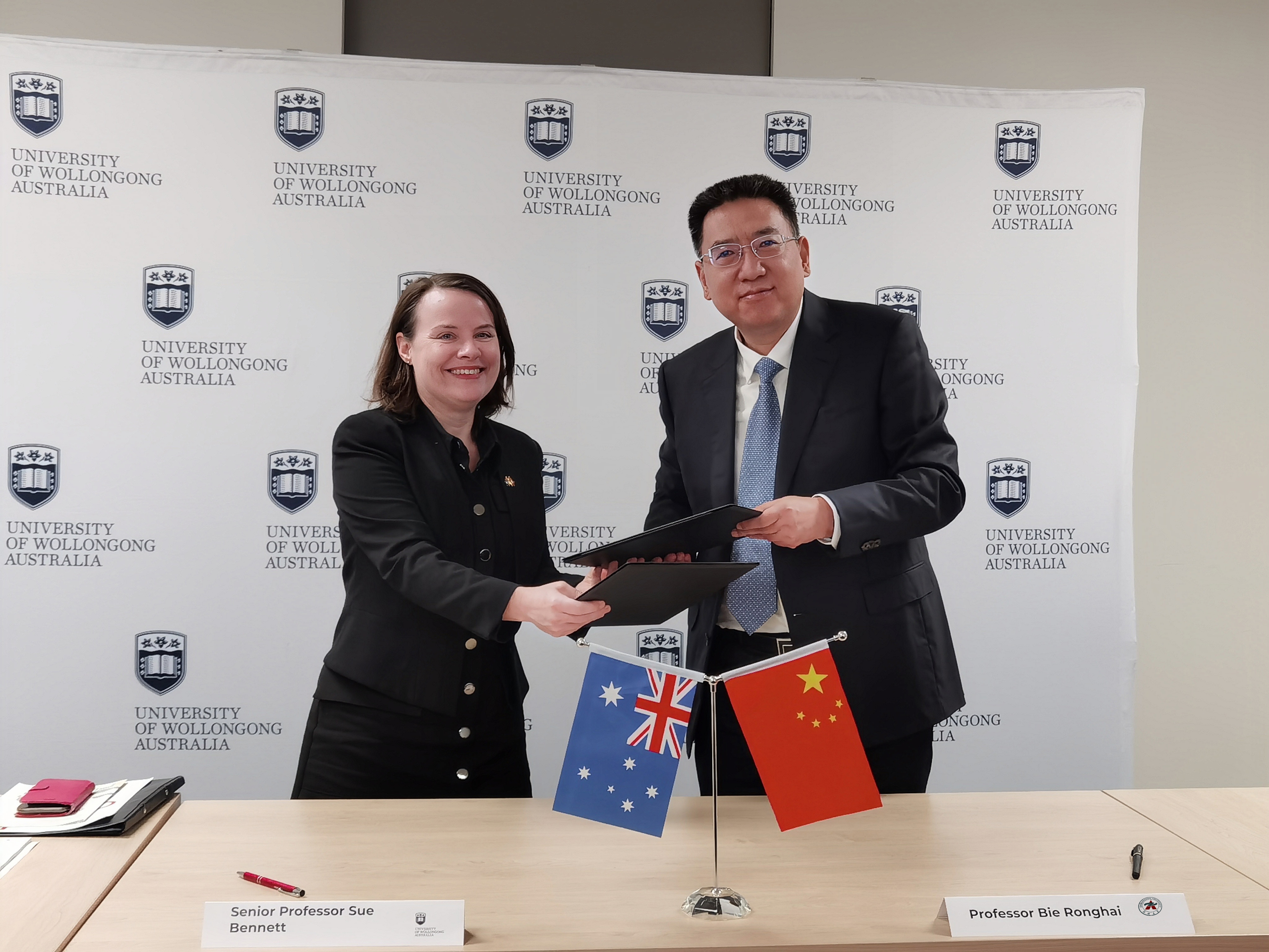 8月15日上午,别荣海一行访问澳大利亚伍伦贡大学,与该校学术副校长苏·本内特(Sue Bennet)进行会谈并续签合作备忘录。自2004年以来,双方合作举办计算机科学与技术、通信工程、电子信息工程三个本科教育项目,培养了一大批卓越创新人才。2023年经教育部批准,上述三个专业升级为“4+0”双证项目,双方合作迈上新台阶。期间,别荣海会见pp电子官方网站杰出校友、工程和信息学部全球战略副部长习江涛教授,感谢他为学校国际交流和人才培养作出的突出贡献,并召开澳大利亚校友座谈会。