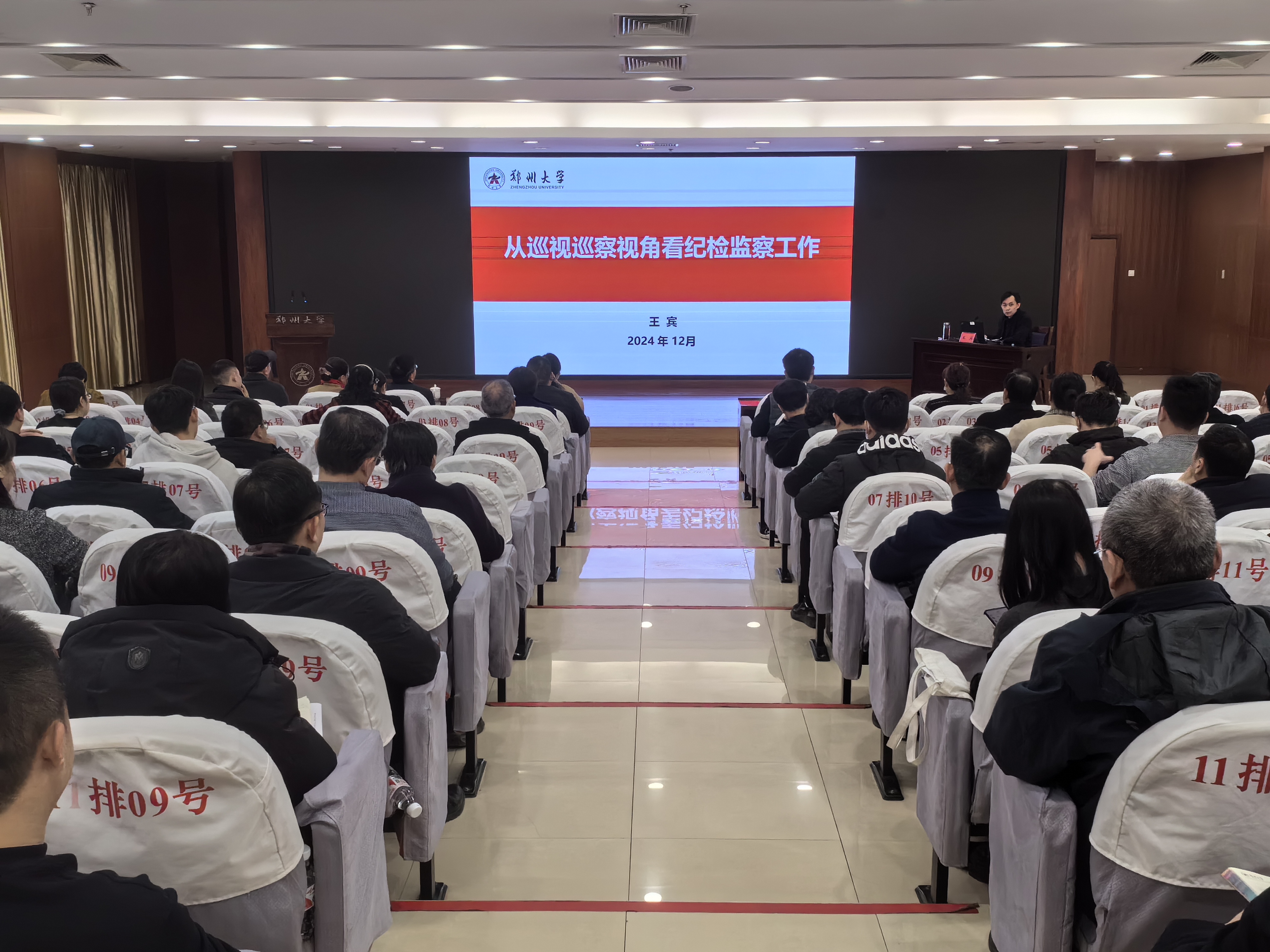 近日,pp电子官方网站纪委、监察专员办公室在主校区举办“清风郑大讲堂”第三期讲座。校党委常委、纪委书记、监察专员陈曦出席报告会。校纪委副书记、党委巡察办主任王宾授课。校纪委委员,校纪委、党委巡察机构全体干部,基层纪委书记、纪检委员,直属附属医院全体纪检监察干部100余人参加报告会。会议由校纪委负责同志主持。