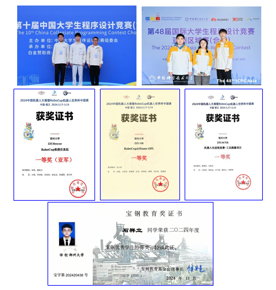 学生参加ACM国际程序设计大赛、中国机器人大赛等竞赛获得的重要奖励