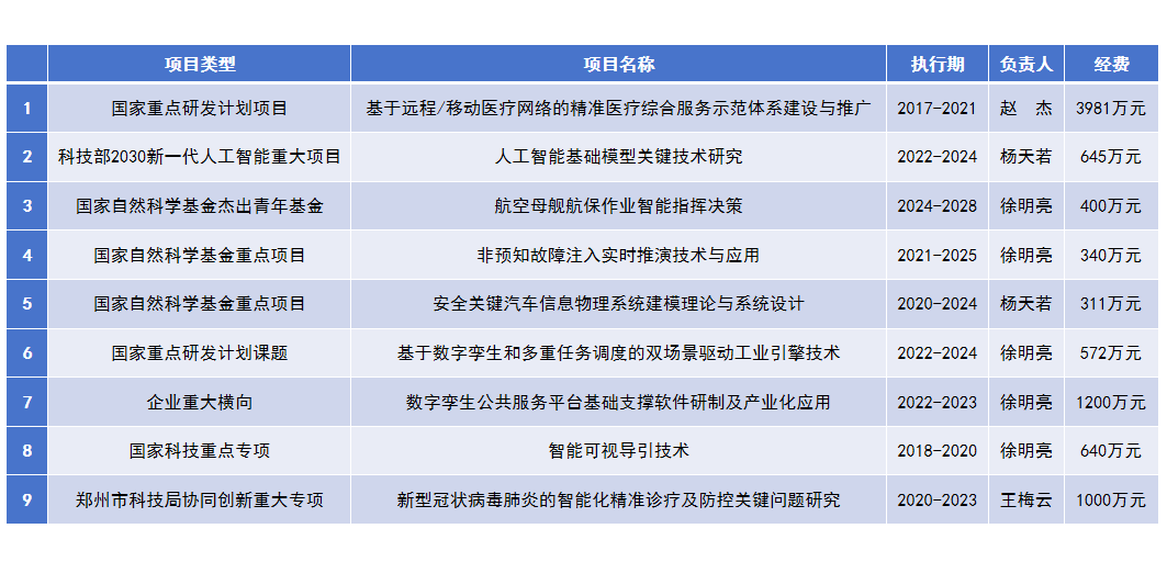 学科拥有国家超级计算郑州中心等5个国家级科研平台、智能集群系统教育部工程研究中心等6个省部级科研平台,作为重要学科力量积极支撑嵩山实验室、黄河实验室等省实验室建设。学院依托雄厚的学科力量与资源,初步形成了以国家超级计算郑州中心等高端平台为依托、以特色优势学科方向为“横梁”、以专业(系)为“纵轴”的“π”型科教融合组织架构和人才培养模式,有力支撑了知识体系、组织体系、平台体系“三位一体”的有组织科教融合。近五年来,学院的科学研究工作呈现跨越式发展趋势,主持承担国家重点研发计划(含课题)、国家科技支撑计划、国家自然科学基金重点项目(含子课题)、国防领域重点任务等国家级项目、省部级纵向项目和企业委托横向项目350余项,获各类科研项目经费超2.2亿元,取得了一批重要标志性成果,产生了较好的经济、社会和国防效益,形成了纵向、横向、军工科研“三足鼎立”的良好发展态势。