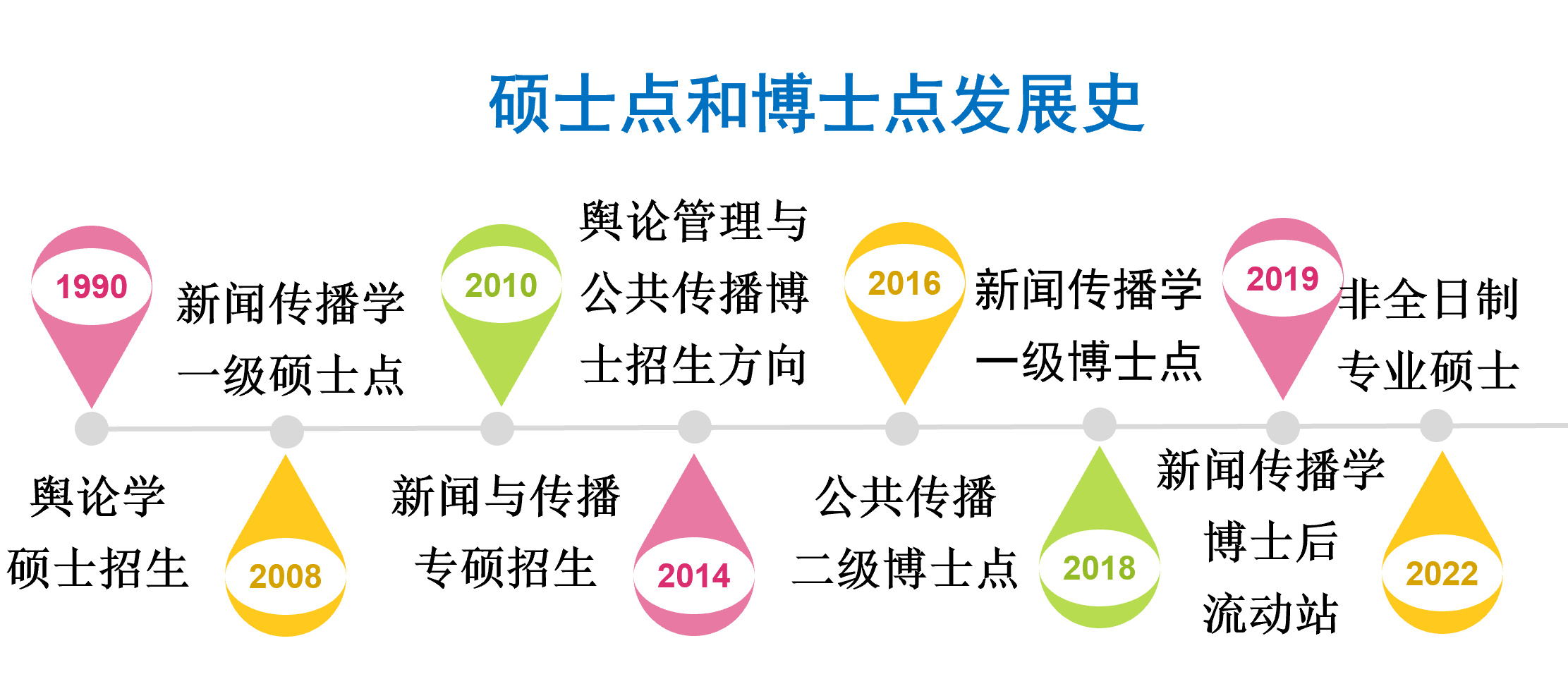 1993年,学院取得新闻学硕士授予权,是国内较早拥有新闻传播学硕士点的单位之一。2008年获批河南省一级重点学科。2014年6月与新华社签订协议共建穆青研究中心,12月中共河南省委宣传部与pp电子官方网站签订了共建新闻传播学院协议。2017年获批第九批河南省重点学科。2018年获批新闻传播学一级学科博士学位授权点。2019年获批新闻传播学一级学科博士后流动站。