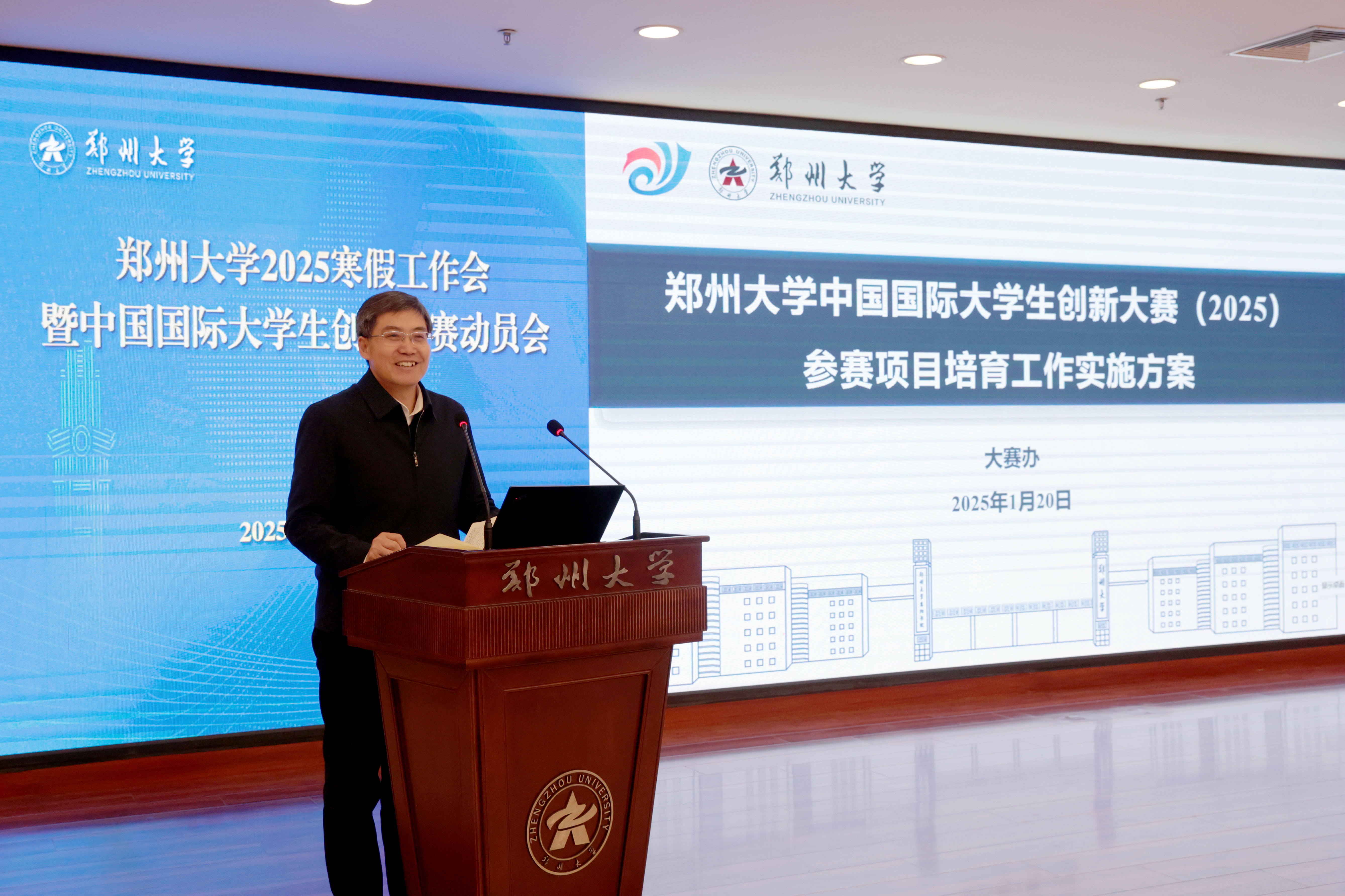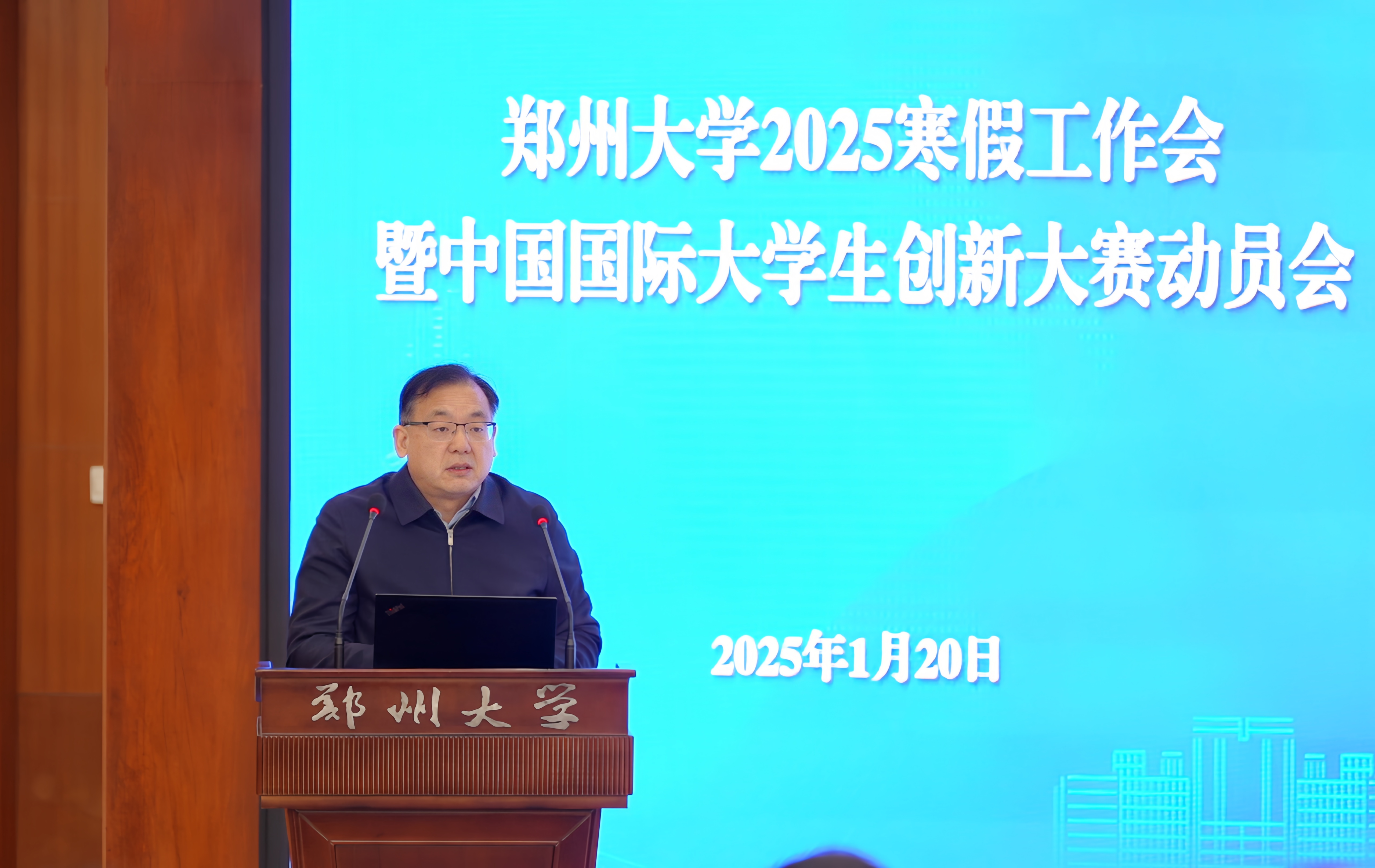 校长李蓬院士从“‘郑大历史’的新突破”“‘郑大奔跑’的新缩影”“‘郑大未来’的新奠基”三个关键词,回顾总结了学校2024年工作的成绩亮点,分析研判学校“双一流”建设面临的新形势新任务,并代表学校向全体师生员工、医护人员、离退休职工和郑大校友表示衷心感谢。她指出,2025年是学校“十四五”和“双一流”二期建设收官年、“十五五”发展规划谋划布局年和“创新突破年”,是蓝图绘就、扬帆再起的奋进之年,要深刻领会教育强国建设规划纲要关于优化高等教育布局、加快建设世界一流大学的战略部署,深入贯彻省委省政府关于郑大提质晋位、办好中国国际大学生创新大赛的目标要求,深度思考学校以“创新突破年”为主题、推动内涵式高质量可持续发展的内在逻辑,抓主抓重、改革创新、争先进位,以高质量办赛成果、高标杆谋划推进、高水平创新突破,为未来十年发展赢得战略主动。她强调,各单位要充分利用寒假窗口期,做到重点工作不断线、科研项目不断线、服务保障不断线、安全稳定不断线、值班值守不断线,统筹推进大赛筹备、“十五五”规划、综合改革、留校管理、隐患排查、执纪监督等各项工作,保障全校师生度过一个平安、祥和、廉洁的春节假期,确保新学期一流大学建设高位推进、再开新局。