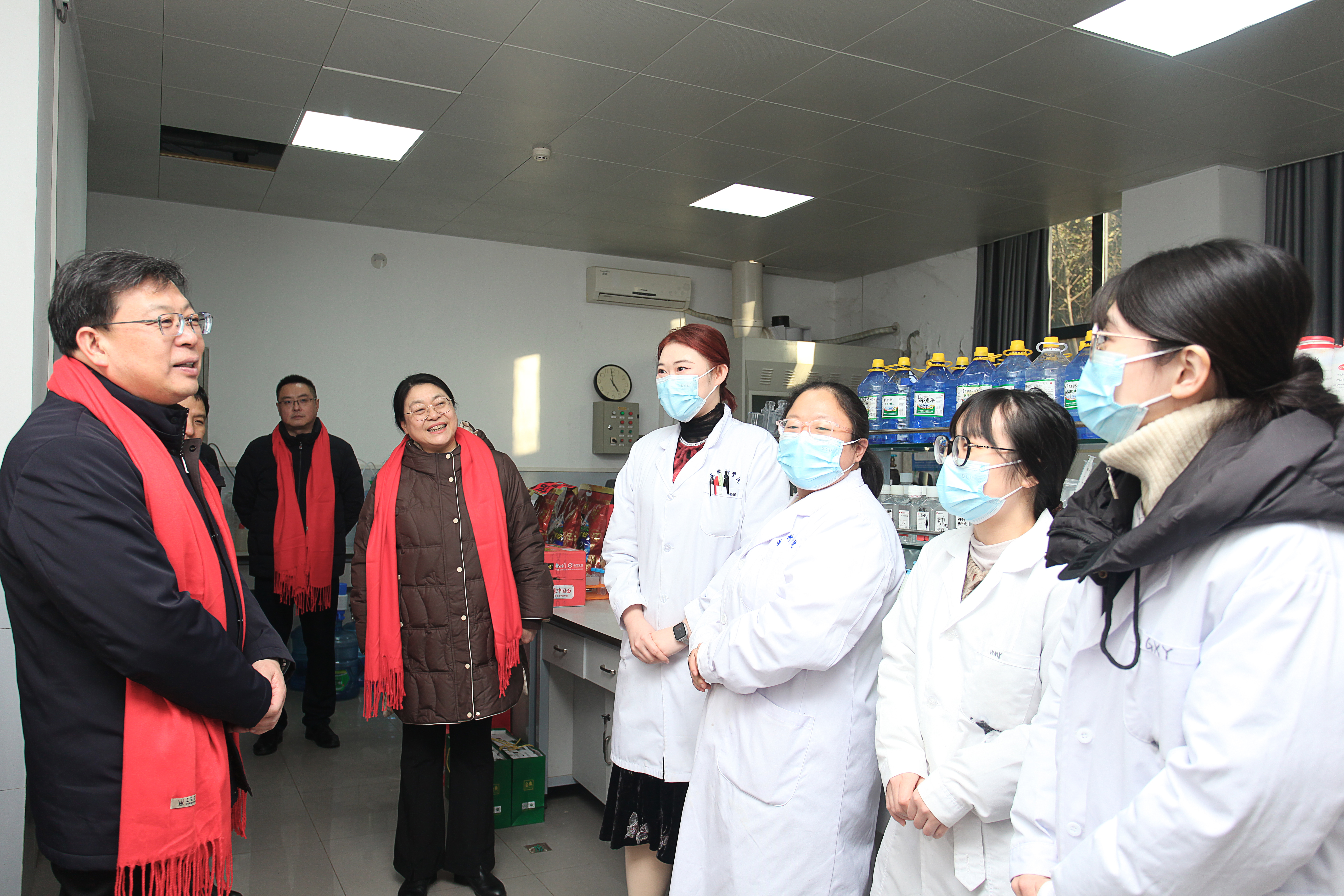 王利国到菊园1号楼、基础医学院实验室慰问留校做科研的研究生,询问他们学习进展及生活状况,向大家致以新春祝福并送上新年礼物,叮嘱同学们要合理安排假期时间,注意人身安全,表示学校会始终将同学们的需求放在首位,全力确保寒假期间各项服务保障工作不断线,让每一位留校同学都能安心科研、舒心生活,度过一个难忘而充实的春节。