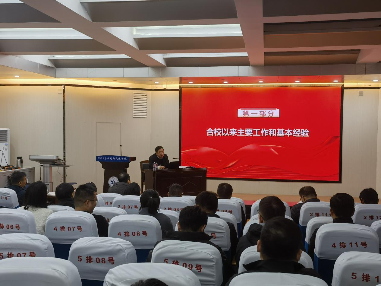 近日,校党委常委、副校长胡少伟到水利与交通学院为师生宣讲pp电子官方网站第四次党代会精神。水利与交通学院班子成员、师生党员代表参加宣讲会。