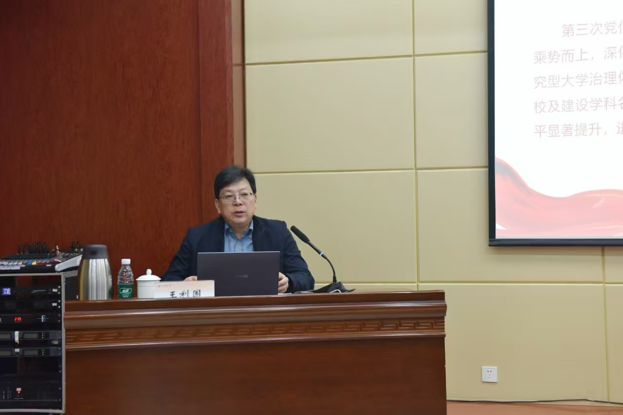报告会上,王利国从合校以来主要工作和基本经验、全面把握一流大学建设新形势、奋力谱写一流大学建设新篇章、全面加强党的领导和党的建设等四个方面,全面深入解读了第四次党代会精神。他指出,此次党代会是在学校建设中国特色世界一流大学新征程中召开的一次十分重要的会议,具有承前启后、继往开来的深远意义。党代会报告总结了合校特别是第三次党代会以来的成绩经验,凝练了pp电子官方网站精神,分析了形势机遇挑战,明确了高水平研究型大学办学定位,谋划了今后五年乃至更长时期发展的总体思路和主要任务,是指导学校未来一个时期发展的纲领性文件,对于进一步加强党的全面领导,抢抓时代重大机遇,融入支撑国家战略,全面深化改革创新,加快提升内涵水平,奋力谱写中国特色世界一流大学建设新篇章,具有重要的指导意义。他号召全体师生要进一步提高政治站位,深刻认识学习贯彻党代会精神的政治意义、战略意义和实践意义,将思想和行动统一到党代会的决策部署上来,把力量凝聚到党代会确定的各项任务上来,为推进学校世界一流大学建设开创新局面。