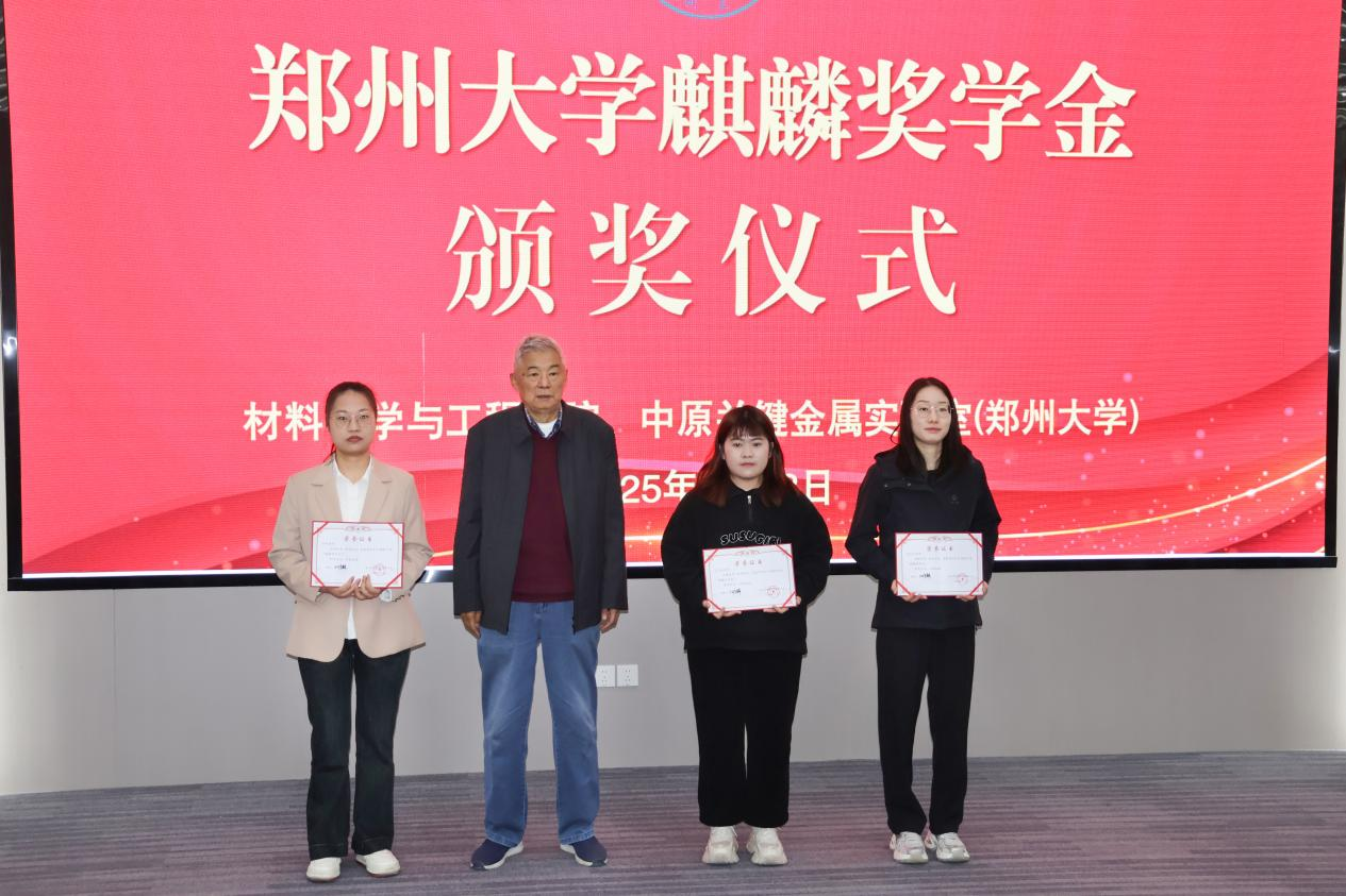 3月13日,pp电子官方网站首届“麒麟奖学金”颁奖仪式在主校区举行。中国工程院院士、中原关键金属实验室主任何季麟,校党委常委、副校长胡少伟出席颁奖仪式。校友总会办公室,材料科学与工程学院、中原关键金属实验室(pp电子官方网站)相关负责同志,全体获奖学生及材料科学与工程学院师生代表100余人参加活动。