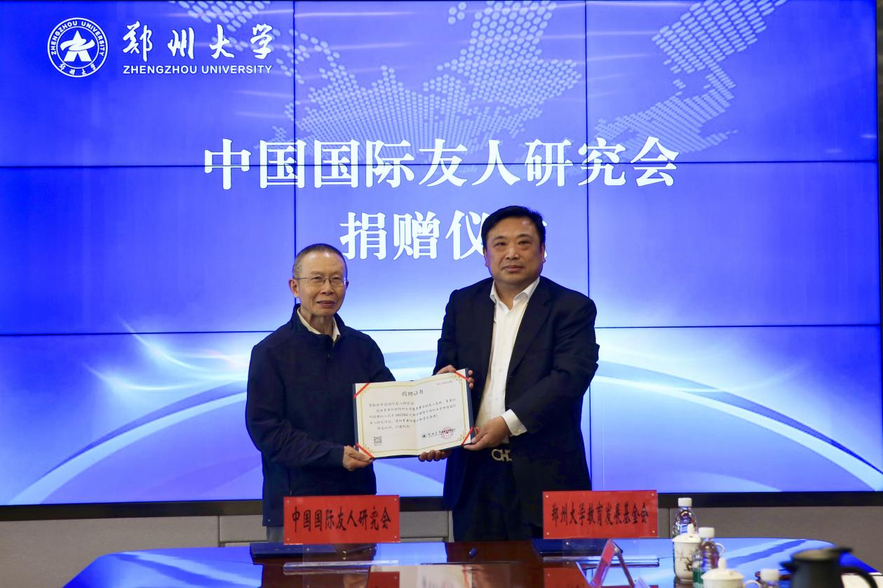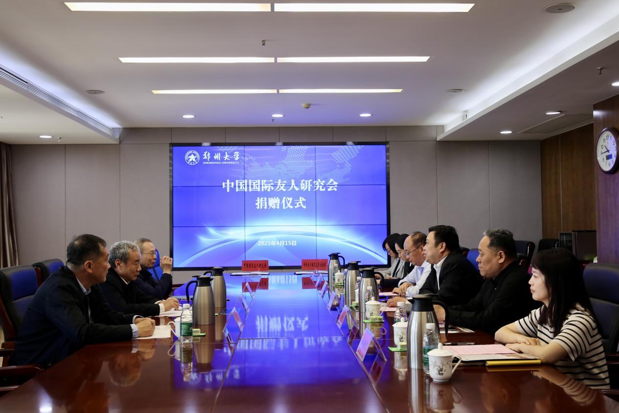 胡少伟在致辞中向中国国际友人研究会捐赠代表团致以崇高的敬意和诚挚的感谢。他指出,pp电子官方网站近年来锚定一流大学建设总目标、坚持高水平研究型大学定位,不断加快对外开放办学步伐,持续推进国际交流与合作,取得了显著成效。中国国际友人研究会这份承载着殷切期望的厚重捐赠,对于加强学校同世界各地知名友好人士的紧密联系、深化中外人文交流及增进民间交往、宣传中国及河南经济社会发展成就、提升pp电子官方网站国际知名度和影响力,具有十分重要的意义。他表示,学校将妥善管理、合理使用捐赠款项,充分发挥自身优势,在推动国际友人相关研究与国际友好事业发展方面不断前行。