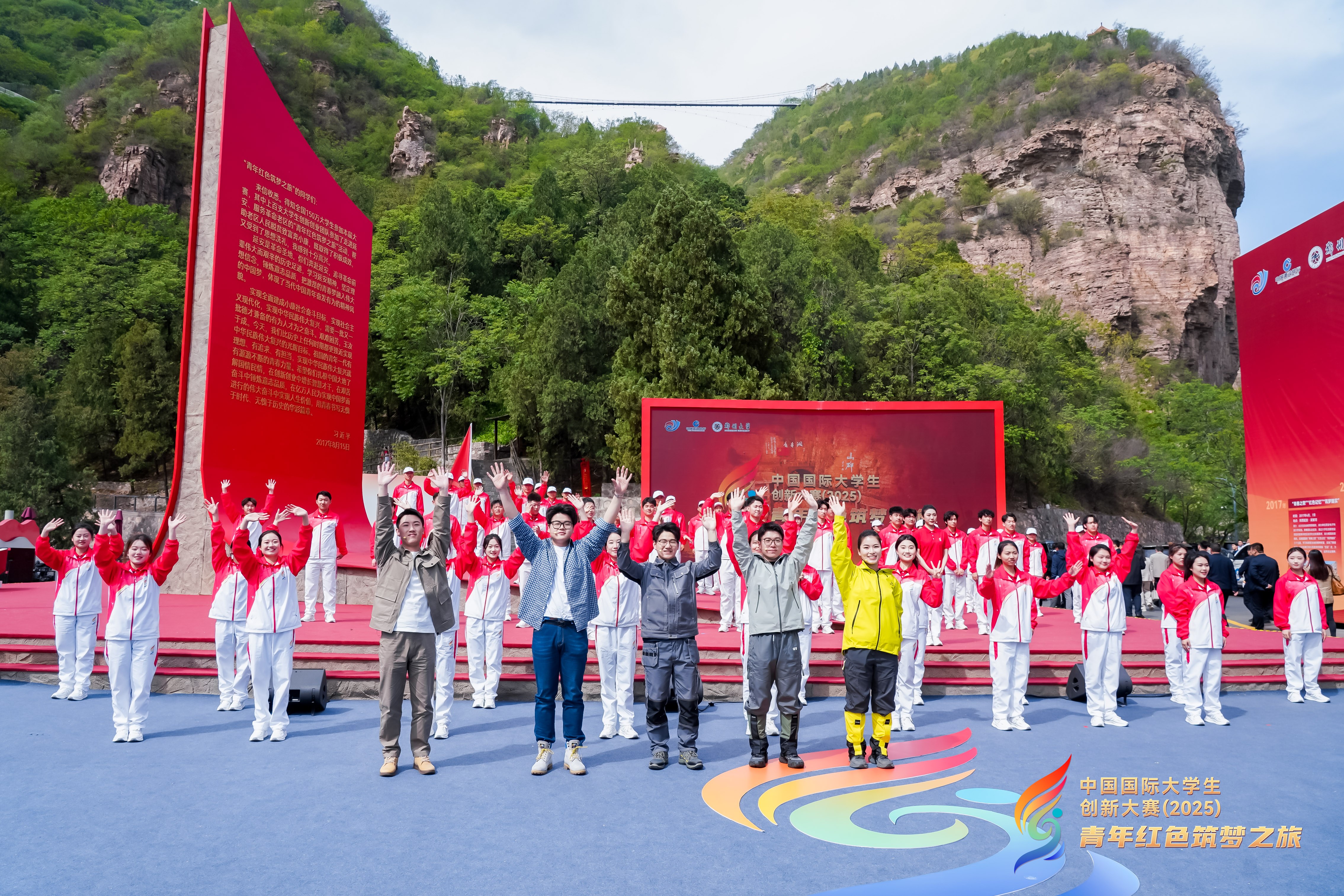 4月23日,中国国际大学生创新大赛(2025)“青年红色筑梦之旅”活动(简称“红旅”活动)在河南安阳红旗渠青年洞文化广场举行。教育部党组成员、副部长吴岩出席活动并为“红旅”学子授旗,河南省委常委、组织部长、省委教育工委书记王刚出席活动。