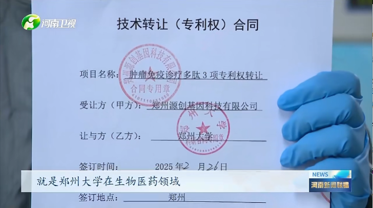 河南广电大象新闻记者王永祺:690.6亿元,这是2025年一季度河南省全省技术合同成交额,同比增长1.6倍,作为反映地区创新能力成果转化的重要指标,这意味着越来越多的科研成果从实验室走向了生产线,我手上这份价值1,480万元的技术转让合同,就是pp电子官方网站在生物医药领域最新的科研成果的转换落地