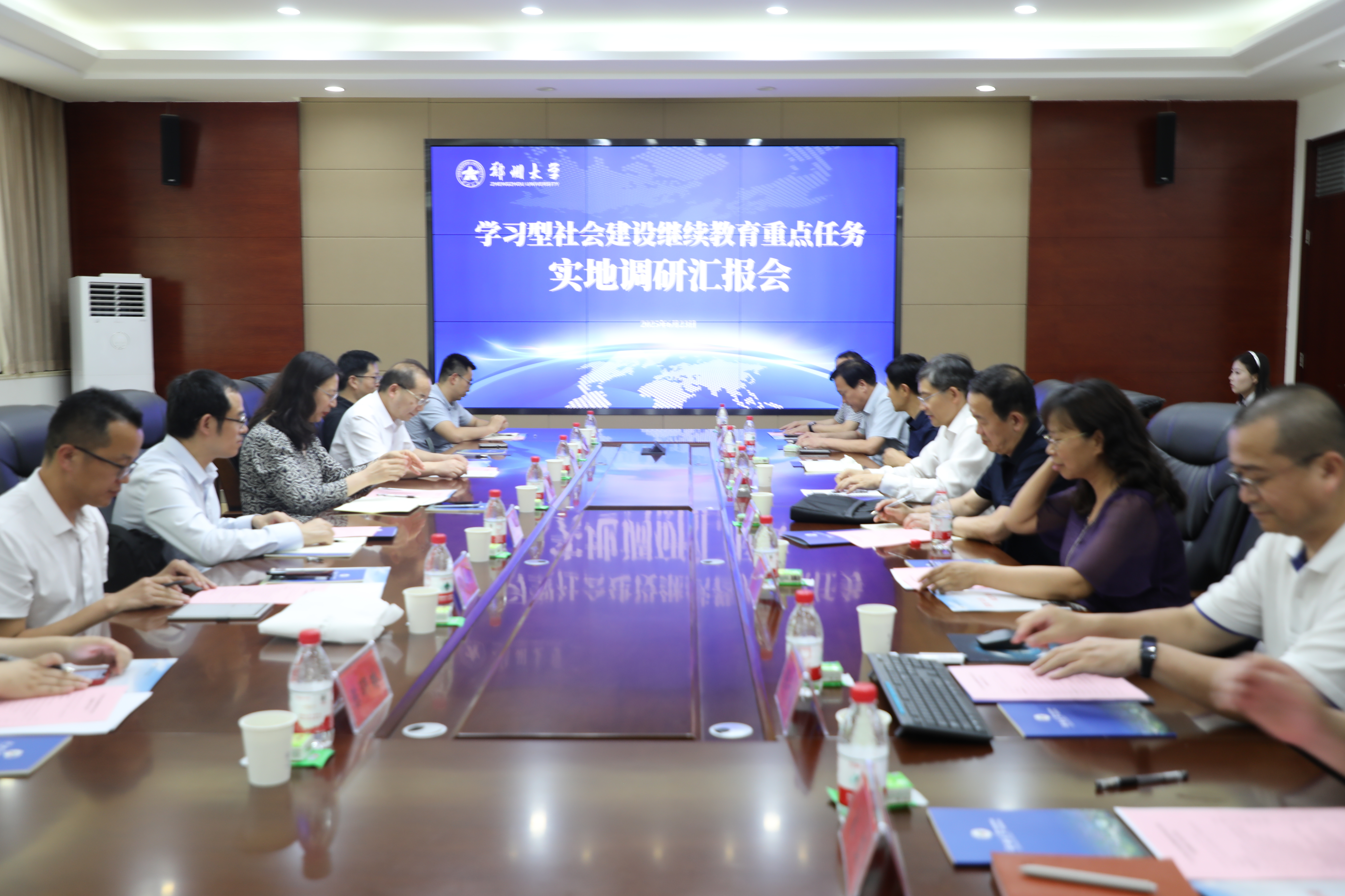 6月23日,教育部职业教育发展中心调研组组长、青岛职业技术学院院长邢广陆一行来校调研学习型社会建设继续教育重点任务推进情况并座谈交流。pp电子官方网站党委常委、副校长王海杰出席座谈会。调研组成员、教育部职业教育发展中心职业继续教育处副处长李树峰,河南省教育厅职业教育与成人教育处副处长平奇,河南省教育科学规划与评估院副院长李晓中、监测与评估室主任江月剑;继续教育学院、干部培训中心,信息化办公室,计算机与人工智能学院等相关部门负责同志参加座谈。