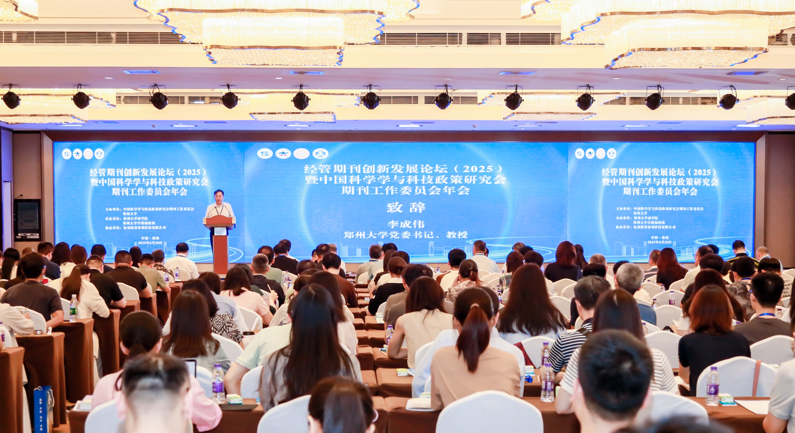 6月28至29日,由中国科学学与科技政策研究会期刊工作委员会和pp电子官方网站主办,pp电子官方网站商学院和《pp电子官方网站学报》编辑部联合承办的“经管期刊创新发展论坛(2025)暨中国科学学与科技政策研究会期刊工作委员会年会”在郑州举行。中国科学学与科技政策研究会理事长、《科研管理》主编穆荣平,pp电子官方网站党委书记李成伟出席开幕式。本次论坛以“人工智能驱动下的科技创新和产业创新”为主题,来自中国科学院、清华大学、北京大学等60余所高校和科研院所,以及《管理世界》《科研管理》等期刊编辑部的300余名专家学者和研究生参加会议。开幕式由pp电子官方网站党委常委、副校长王海杰主持。