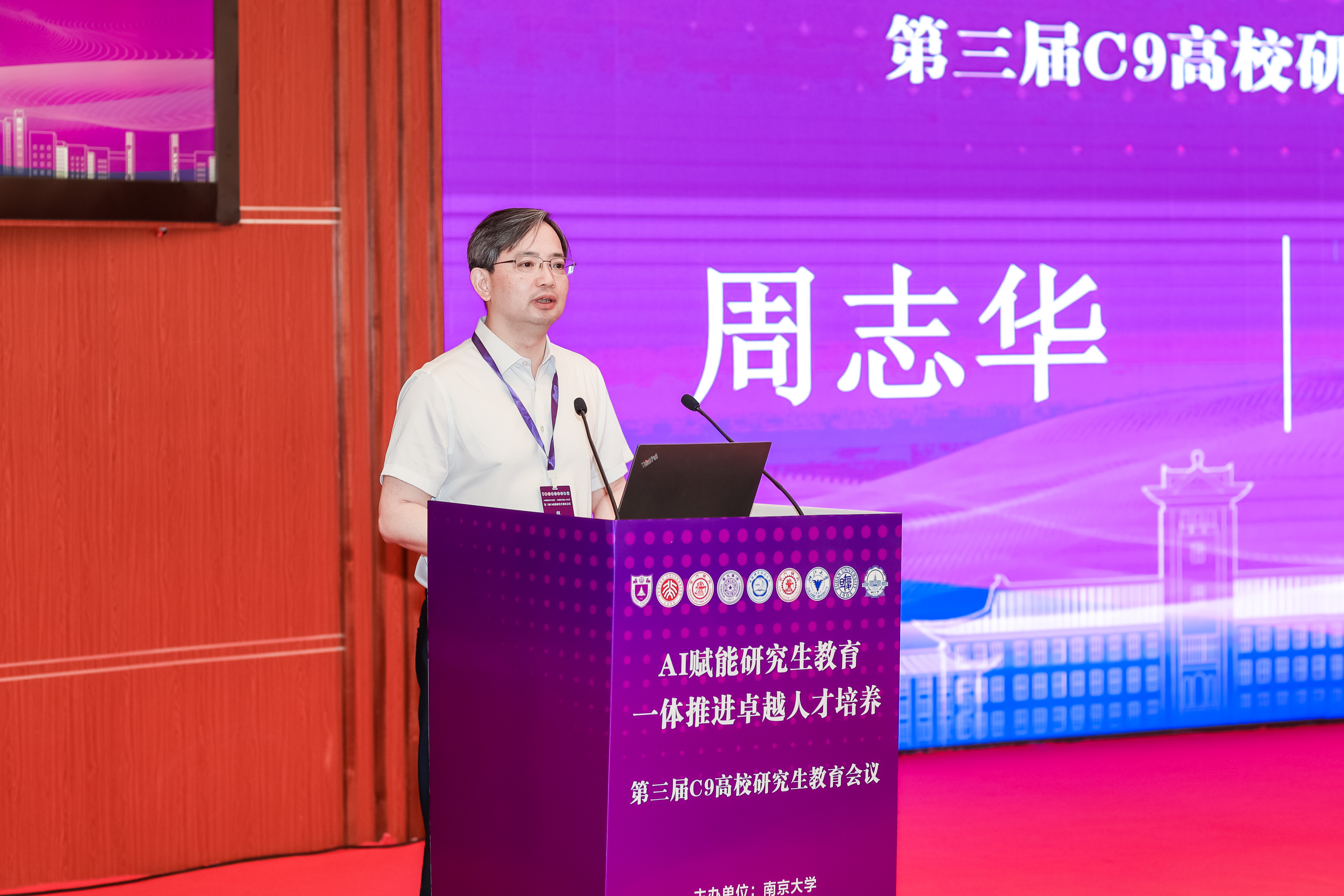 周志华首先向参加会议的领导和专家表示热烈欢迎,他指出,研究生教育作为高等教育体系的顶端环节,是贯通教育、科技、人才三大战略的核心纽带,研究生创新能力的培养直接事关中国式现代化发展的成效。近年来,南京大学积极响应党和国家的号召,以“AI赋能研究生教育”为关键着力点,推动以人工智能为杠杆撬动研究生教育全要素变革,构筑引领时代的高层次创新人才培养新范式。同时,南京大学从招生改革筑牢育人根基、完善资助破解后顾之忧、大力布局营造创新生态三方面举措持续构建拔尖创新育人新格局。他表示,C9高校在拔尖创新人才培养等方面有很多先进做法,期待以本次会议为平台,各高校能够充分交流互鉴,凝聚顶尖高校智慧合力,探索研究生教育新路径。