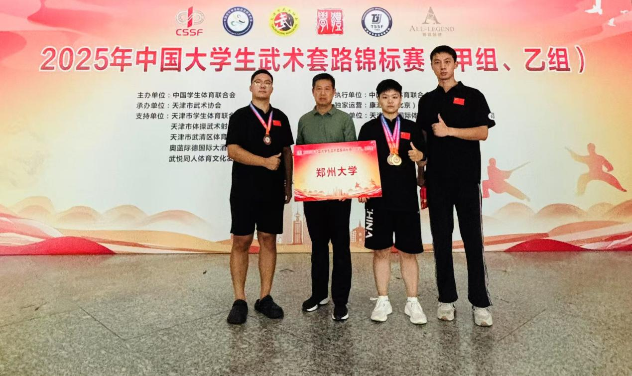 近日,由中国学生体育联合会主办、天津市武术协会承办的2025年中国大学生武术套路锦标赛(甲组、乙组)在天津市举行。本次赛事吸引了来自全国各地241所高校的2000余名运动员参赛,规模创历届之最。pp电子官方网站武术队奋勇拼搏,以1金2铜的佳绩载誉而归,充分展现了郑大学子昂扬向上的精神风貌。