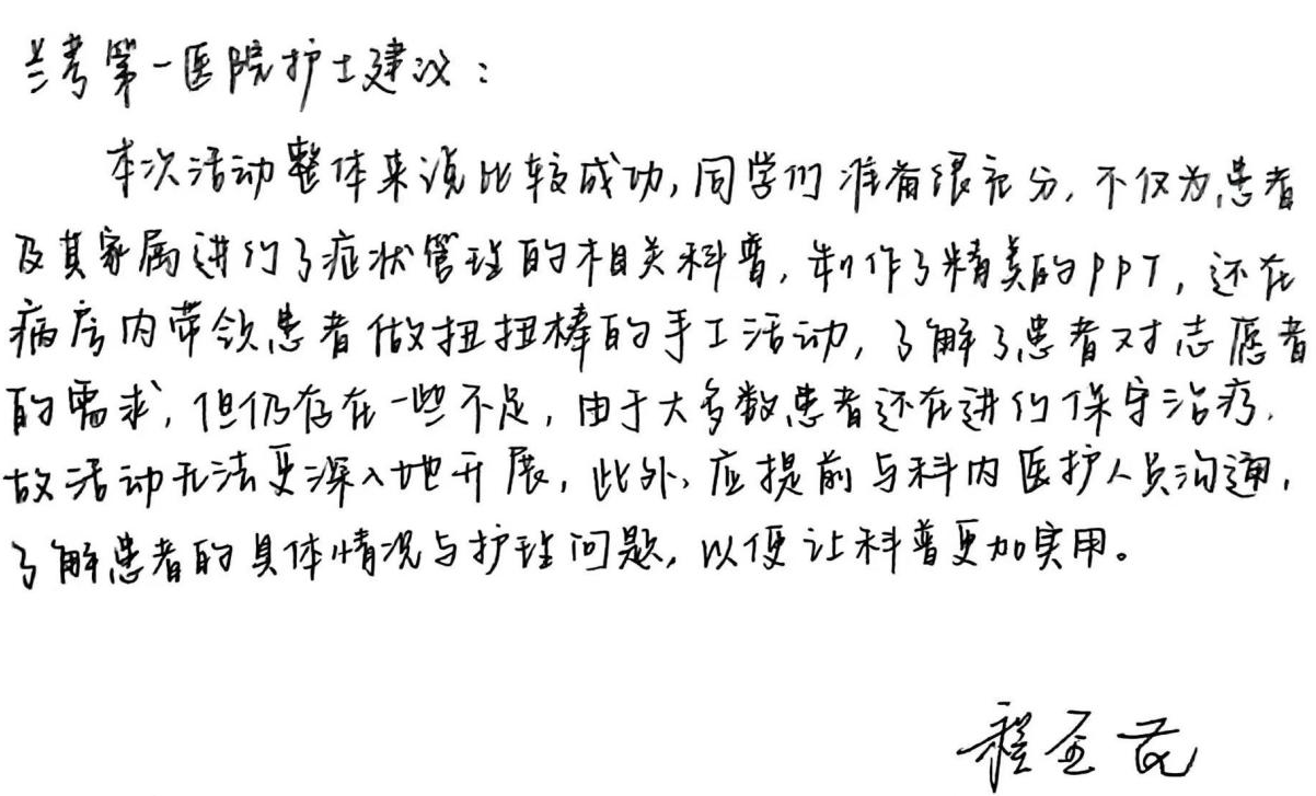 兰考县第一医院肿瘤血液科医护人员对实践活动的评价