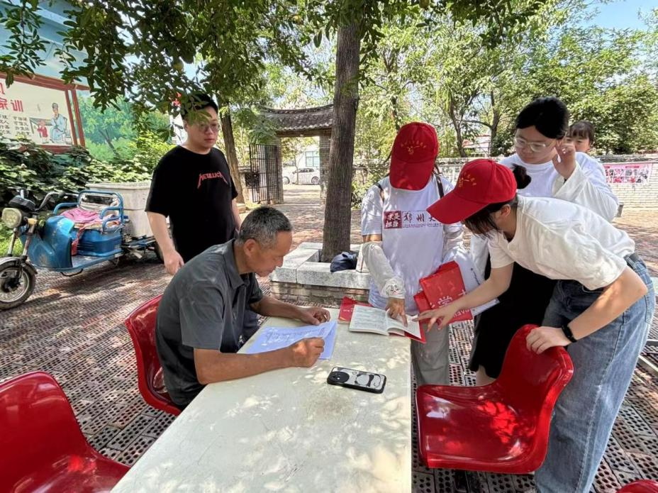法学院“法润鹰城”乡村振兴实践队将专业所学与乡村实际需求相结合,围绕产业发展、人才支撑、生态保护等内容进行细致讲解并重点普及《中华人民共和国乡村振兴促进法》,让法律走进田间地头,以青春之力助力乡村法治建设。