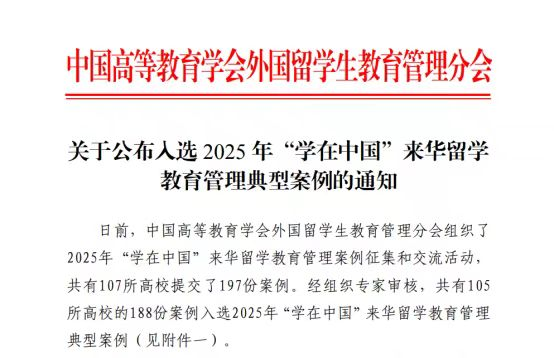 近日,中国高等教育学会外国留学生教育管理分会公布了2025年“学在中国”来华留学教育管理典型案例评选结果。pp电子官方网站国际教育学院申报的《全球化背景下中国国情教育课程<走进中国>的创新研究与探索》案例,凭借其显著的教学创新成果,成功入选“教学创新类”典型案例。