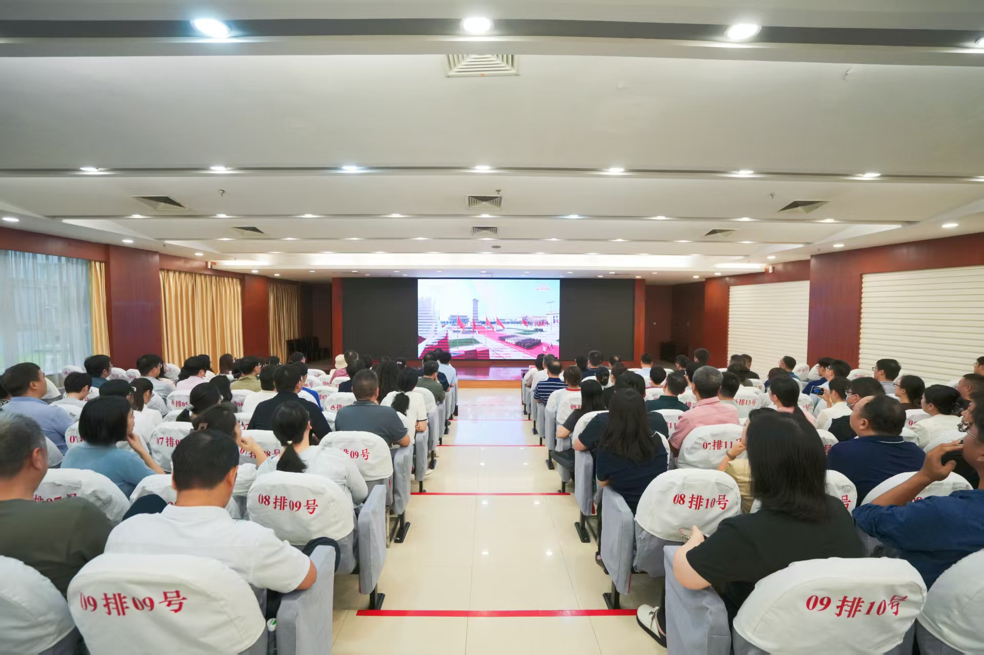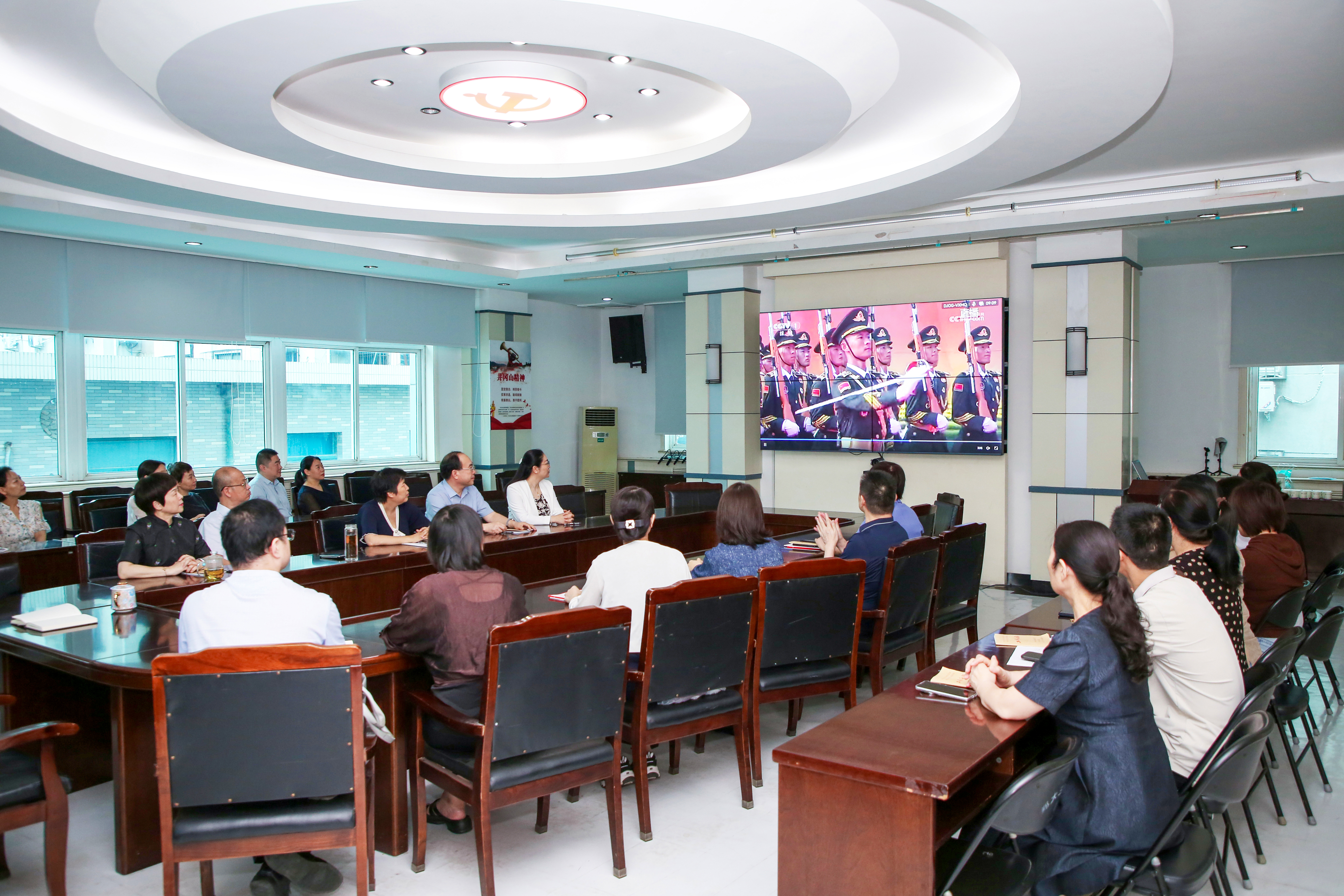 校领导、机关党员集体收看纪念大会直播