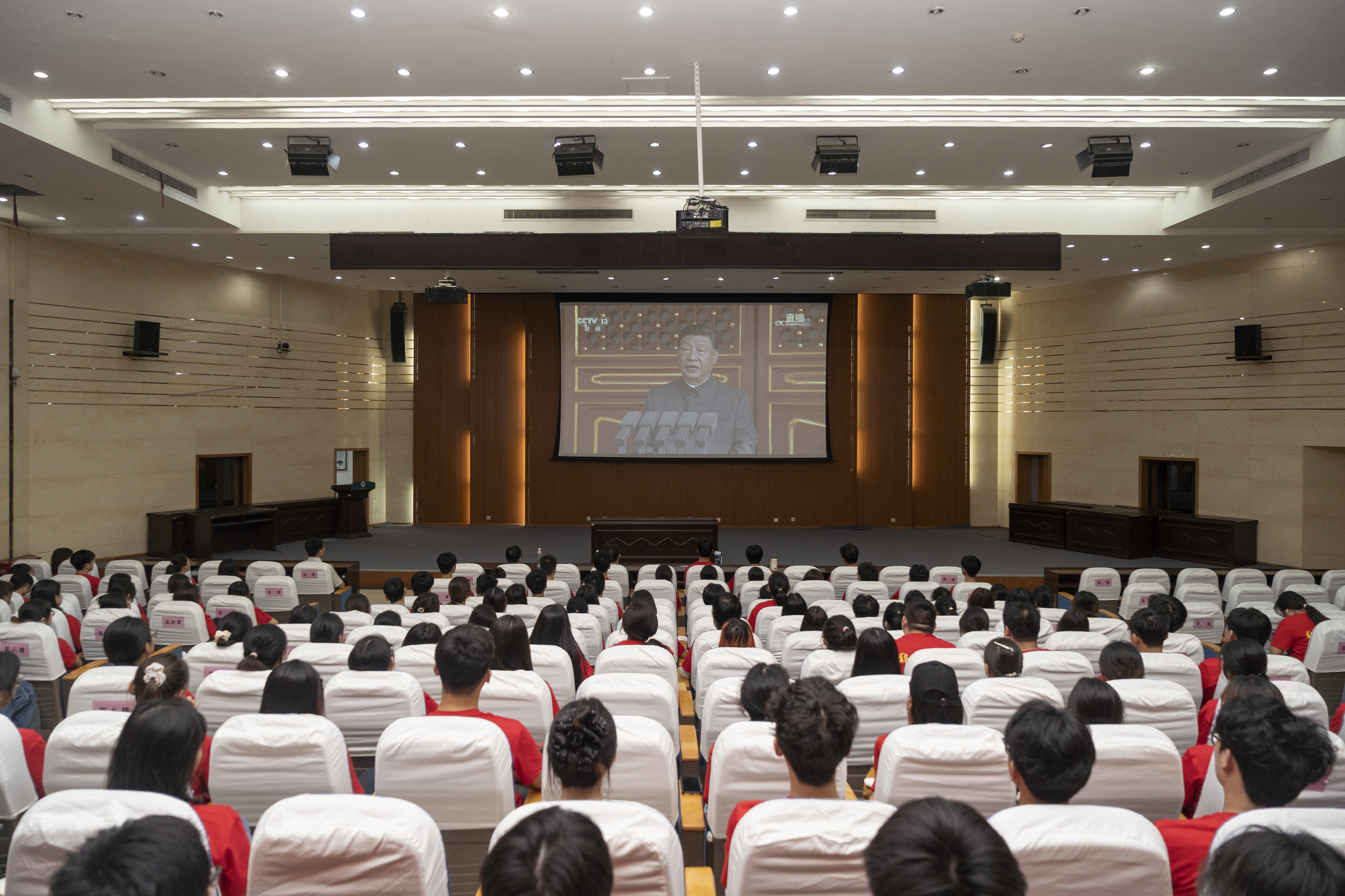 pp电子官方网站在主校区综合管理中心第二报告厅设置主会场,在第一报告厅、各校区、各学院设置多个分会场,集中组织师生员工收看大会直播。校党委书记李成伟,校党委副书记、工会主席韩国河,校党委常委、副校长王海杰,校部机关干部职工及师生代表在主会场共同观看大会盛况。校党委副书记王利国在新疆哈密与学校研究生支教团、2025届西部计划志愿者共同收看阅兵盛典。“青年马克思主义者培养工程”全体学员,各单位和学院师生在分会场、教室、实验室、宿舍、餐厅等观看大会实况。习近平总书记的重要讲话和盛大阅兵式在师生中引起热烈反响。
