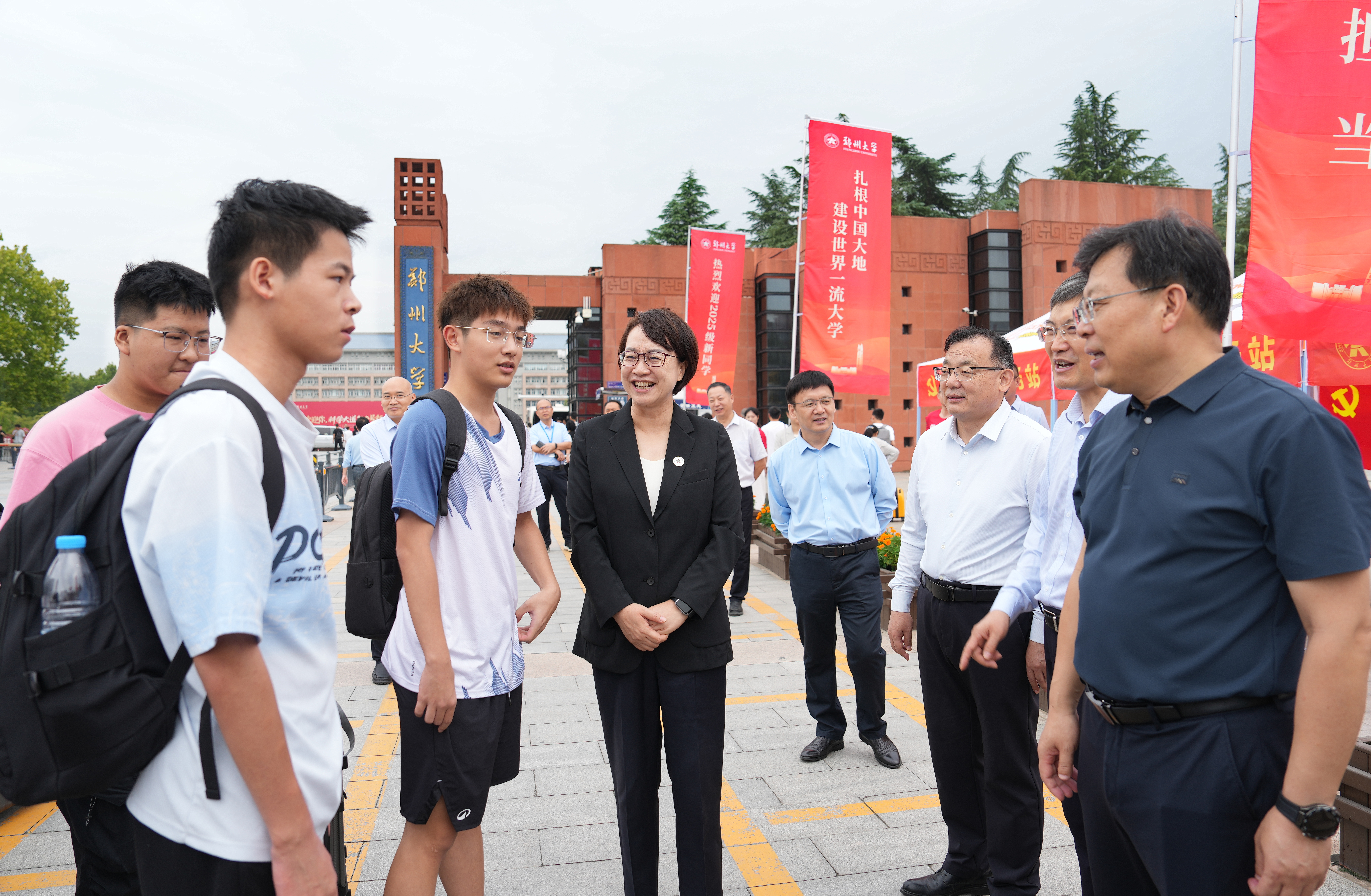 “欢迎成为科学大道100号的新主人!”“感谢把优秀学生送到郑大!”迎新期间,校党委书记李成伟、校长李蓬院士等校领导先后深入主校区、南校区、北校区及地铁站迎新点,看望2025级新生,慰问迎新工作一线的师生员工。