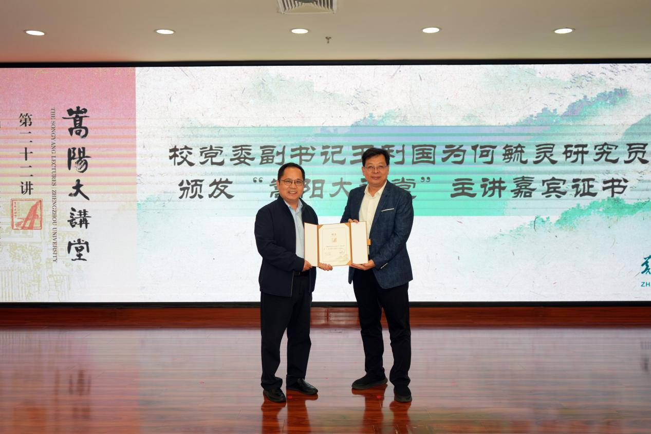 王利国为何毓灵颁发“嵩阳大讲堂”主讲嘉宾证书