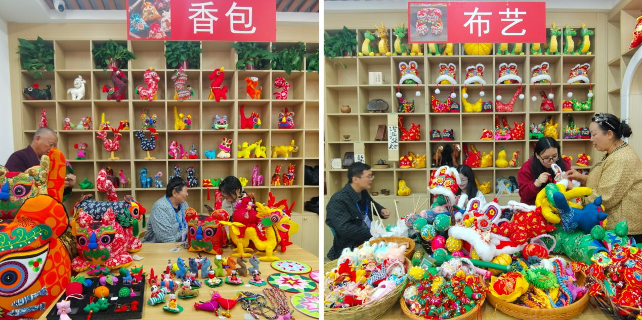 本次体验馆汇聚了由河南省工艺美术学会特邀的30余位国家级、省市级非遗传承人,集中呈现22类非遗项目。从质朴浑厚的“泥泥狗”“泥咕咕”,到炽烈浓郁的朱仙镇木版年画;从雅致细腻的汴绣,到香气袭人的香包;从威萌的布老虎、隽永的南阳皮雕,到纤巧灵动的核雕、面塑;更有砖雕、漆器、手鞠球、汴京灯笼张、黄河澄泥砚、宋式茶食、水晶雕刻等千余件展品,琳琅满目,“件件有故事”,令观众目不暇接,赞叹“眼睛不够用”。
