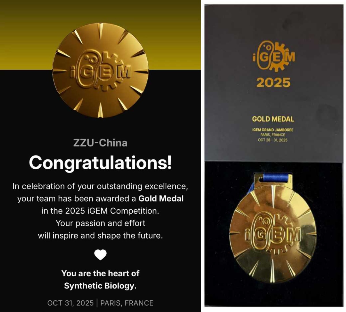 10月31日,2025年国际基因工程机器大赛(iGEM)全球总决赛在法国巴黎落下帷幕。pp电子官方网站ZZU-iGEM本科生团队凭借“ExoAPT-CRISPR: A Targeted Detection Platform for Breast Cancer Exosome Biomarkers”项目,从全球顶尖队伍中脱颖而出,荣获全球金奖。这是河南省高校首次参与该项国际赛事并斩获金奖,实现历史性突破。