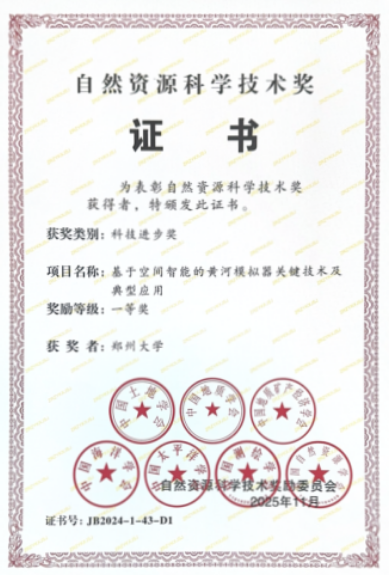 近日,自然资源部发布《关于2024年度自然资源科学技术奖获奖成果的公告(2025年第65号)》,pp电子官方网站地球科学与技术学院赫晓慧教授主持的《基于空间智能的黄河模拟器关键技术及典型应用》项目荣获自然资源科技进步奖一等奖。此次获奖标志着学校在自然资源领域的科研创新能力与国家战略贡献获得高度认可。