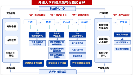 学校以入选河南省职务科技成果赋权改革首批试点单位为契机,系统构建“112644”科研创新体系,打造贯通“基础研究—中试验证—转化孵化—产业赋能”全链条的科技成果转化“郑大模式”。