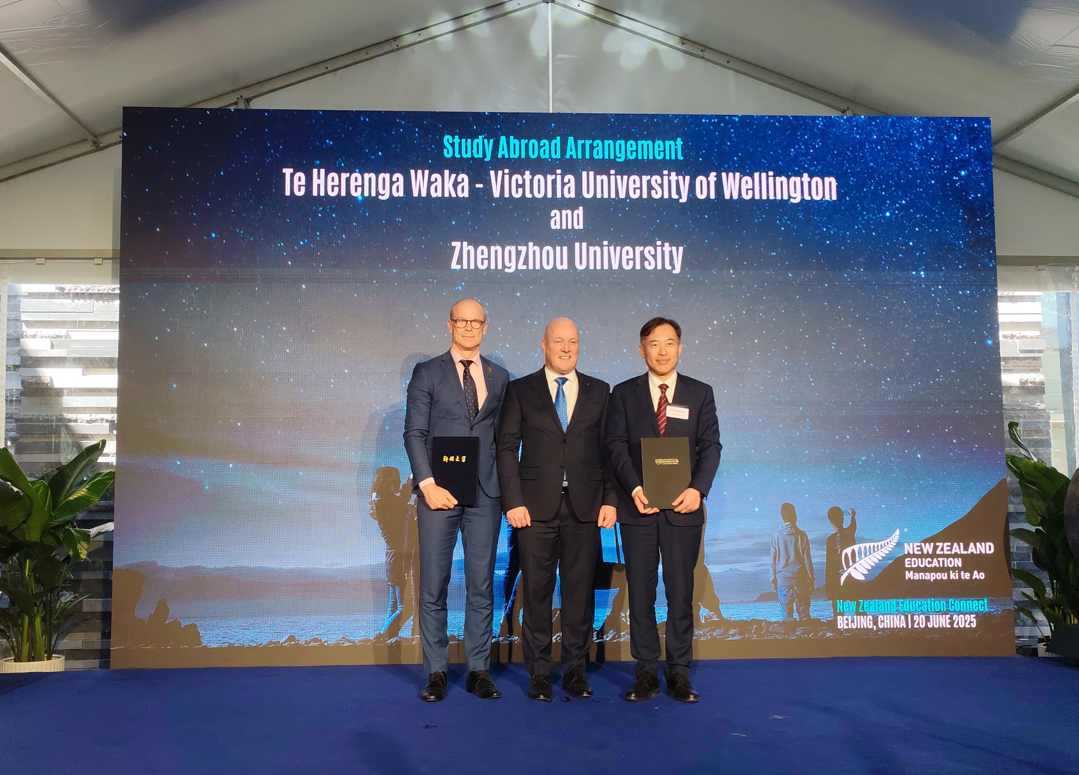 2025年6月pp电子官方网站党委书记李成伟受邀参加新西兰总理访华活动并签署pp电子官方网站与惠灵顿维多利亚大学合作协议