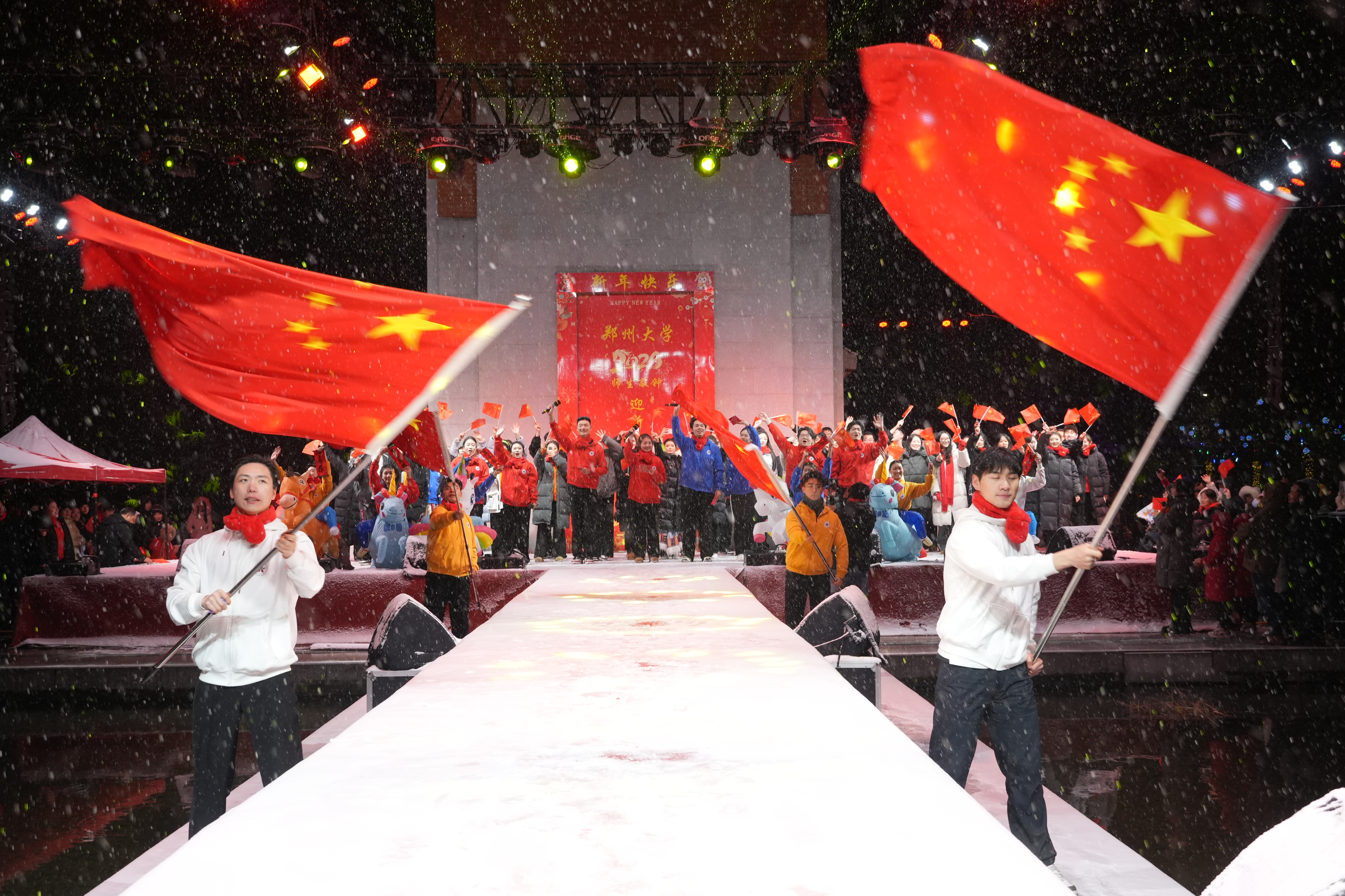 嘉行共颂,青春飞扬。12月31日晚,学校在中心体育馆举行2024—2025学年学生工作表彰大会。校领导为受表彰的集体与个人颁奖,勉励全体师生,汲取奋进力量。随后举行的2026年师生元旦文艺晚会,以歌曲、舞蹈、语言类等节目精彩演绎,尽展青春风采,奏响新年乐章。现场光影交织,掌声如潮,洋溢着温暖而昂扬的节日氛围。