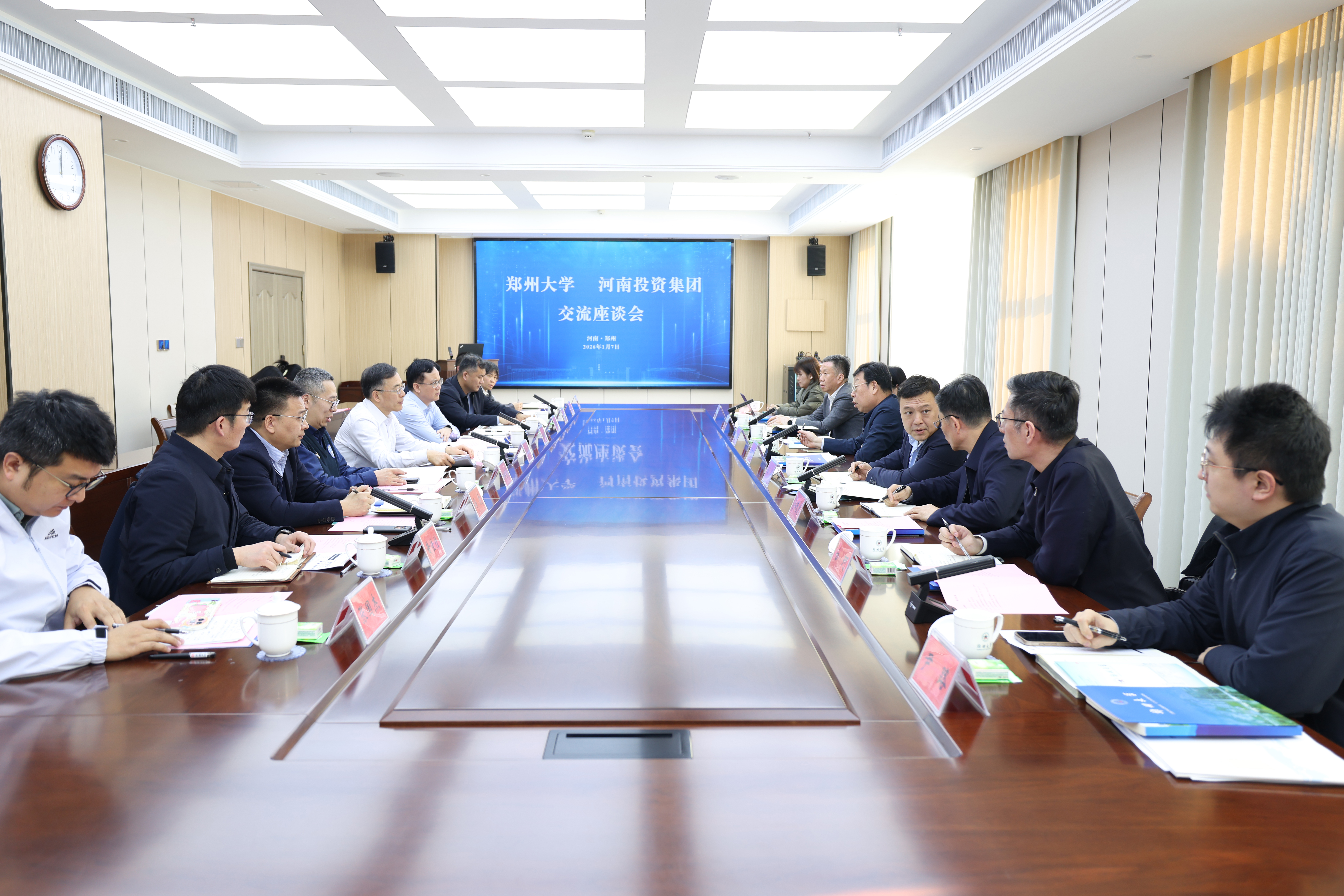 1月7日,河南投资集团有限公司党委书记、董事长闫万鹏一行来校交流调研。校党委书记李成伟,党委常委、副校长臧双全出席座谈会,党委办公室、科学技术研究院、大学科技园建设管理中心、化学学院、材料科学与工程学院、机械与动力工程学院、土木工程学院、化工学院等单位负责同志和科研团队代表参加会议。