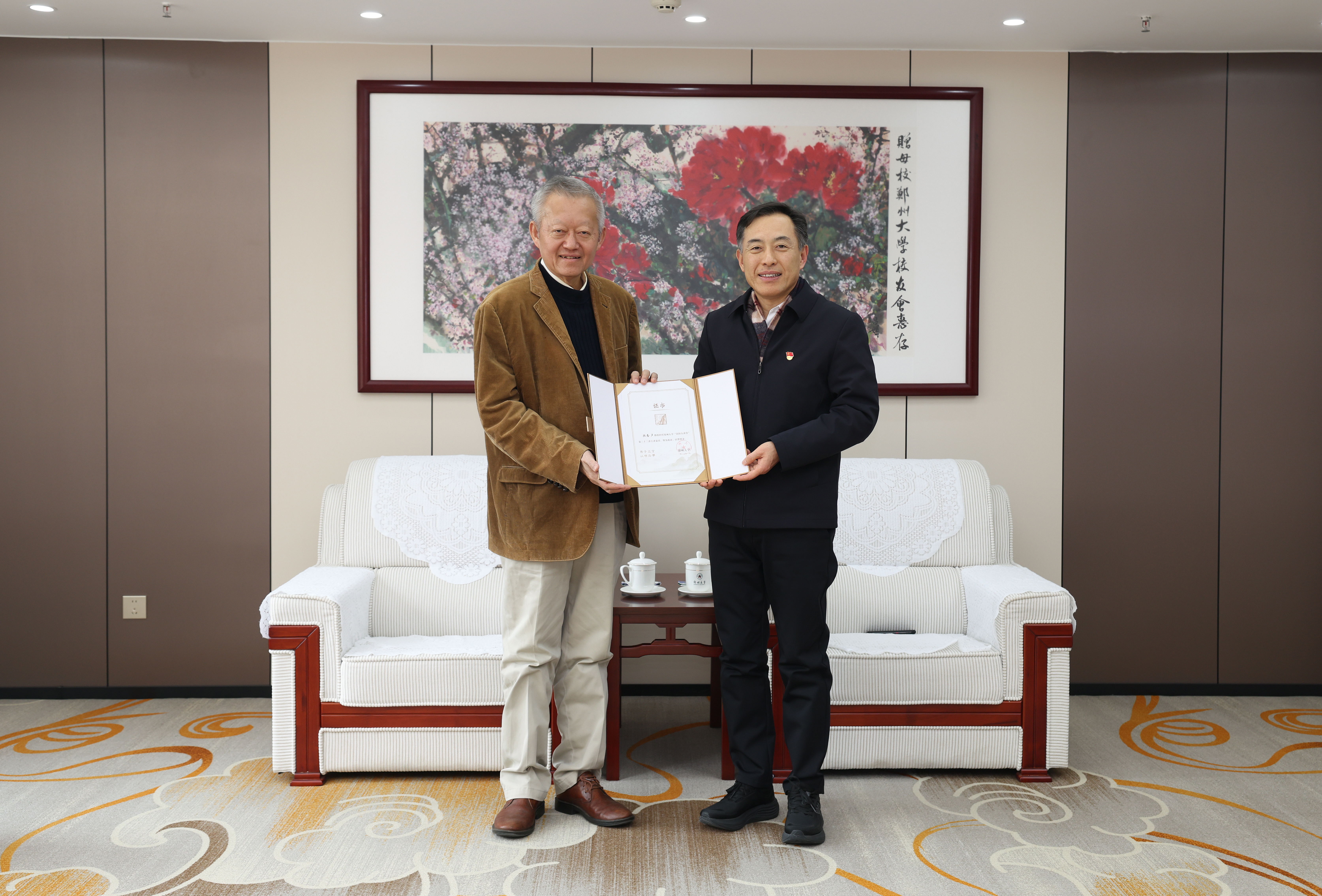 李成伟为陈春声颁发“嵩阳大讲堂”主讲嘉宾证书