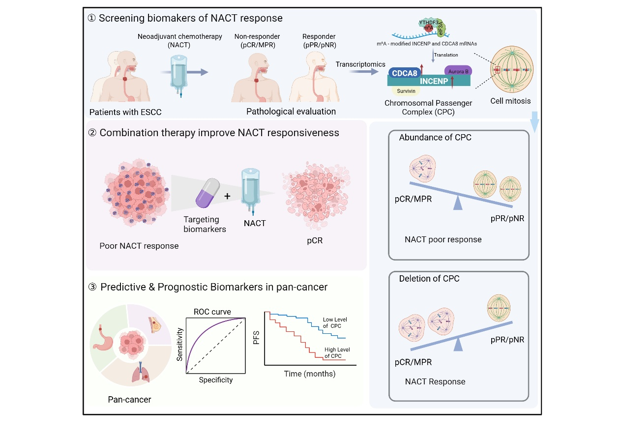 新辅助化疗已广泛应用于食管癌、肺癌和乳腺癌等多种肿瘤的治疗,可显著提高患者5年生存率。然而,约50%–70%的患者对新辅助化疗不响应,不仅限制了治疗获益,还需承受化疗相关毒副作用,严重影响预后。因此,阐明影响新辅助化疗疗效的关键分子机制,开发预测化疗疗效的生物标志物以及联合治疗靶点,对于提升治疗效果具有重要意义。