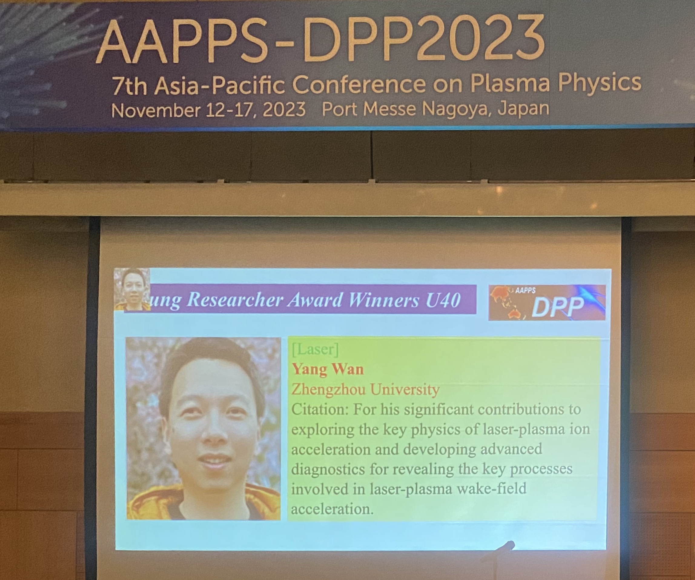 pp电子官方网站万阳教授荣获亚太等离子体物理青年科学家奖