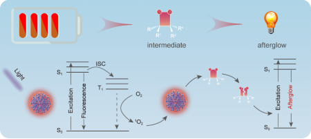 针对上述问题,该团队研究人员开发了一种光氧化诱导策略来构建近红外余辉发光碳纳米点,其余辉发光寿命可达5.9小时,可与稀土或有机长余辉发光材料相媲美。结构/超快动力学分析和密度泛函理论模拟揭示了碳纳米点中的长寿命余辉发光是由于光氧化诱导碳点表面产生高能中间体,该中间体可以通过电子交换激发碳核,使其辐射跃迁,缓慢释放光子发光。碳基纳米粒子的空间位阻效应,能够进一步减缓其光氧化速率,延长其发光寿命。近红外长波长发射使其组织穿透深度达到20毫米。同时,该碳纳米点具有高成像信噪比、良好的生物安全性和肿瘤特异性靶向能力。基于此开发了余辉导航技术成功应用于小鼠肿瘤组织精确切除,展示了其潜在的临床应用价值。该工作对于开发用于指导临床手术的余辉发光材料提供了新的研究思路。