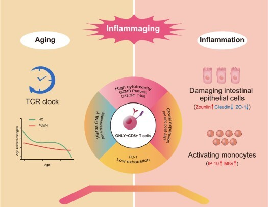 GNLY+CD8+ T细胞促进HIV感染者早衰和持续性炎症的发生及其机制