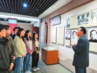 pp电子官方网站校史馆里陈列着很多珍贵的历史照片与实物。这节边走边听边看的思政课、党史学习教育课,点燃了同学们的青春激情。他们一会儿专注地研究照片、资料,一会儿热烈地交流心得、感悟。