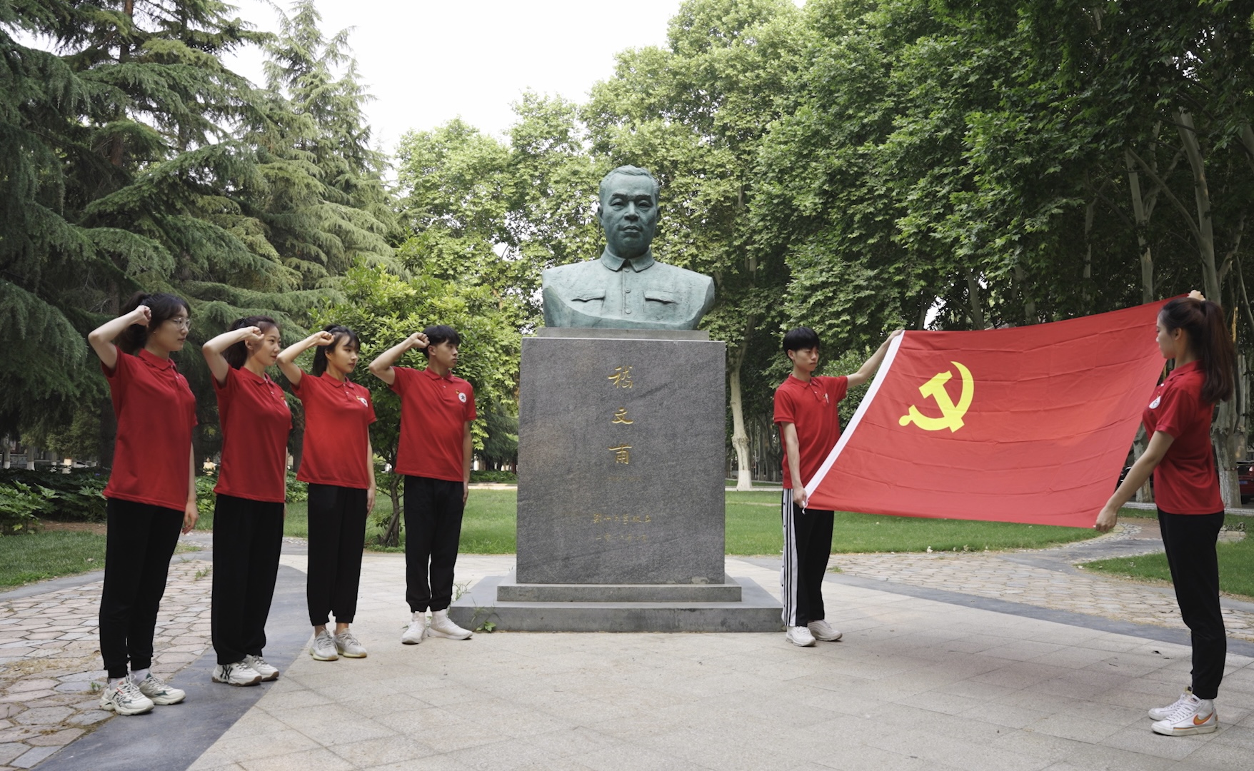 郑大学子在首任校长嵇文甫塑像前庄严宣誓