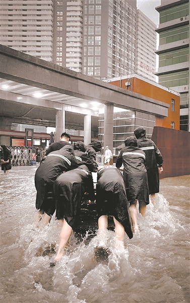 7月20日,pp电子官方网站后勤工作人员正在抢险救灾。(学校供图)