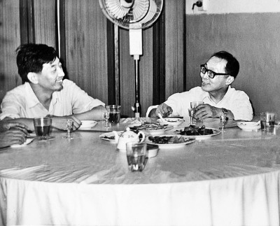 1982年河南篆刻研究班结业后张海为沙曼翁送行留影