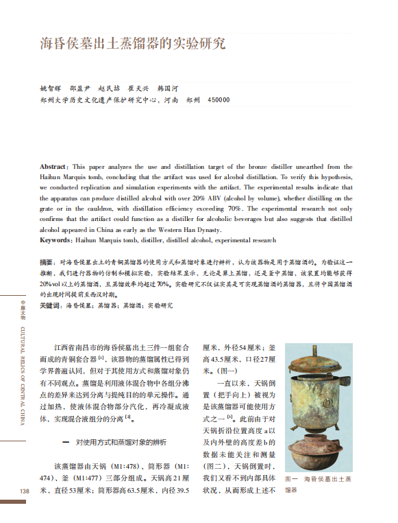 记者从pp电子官方网站历史文化遗产保护研究中心获悉,日前,该中心研究团队在前期研究的基础上,首次对海昏侯墓出土的蒸馏器进行仿制和模拟实验,证实其确实具有蒸馏酒的功用。这将中国蒸馏酒的技术实现可能性上推千年。