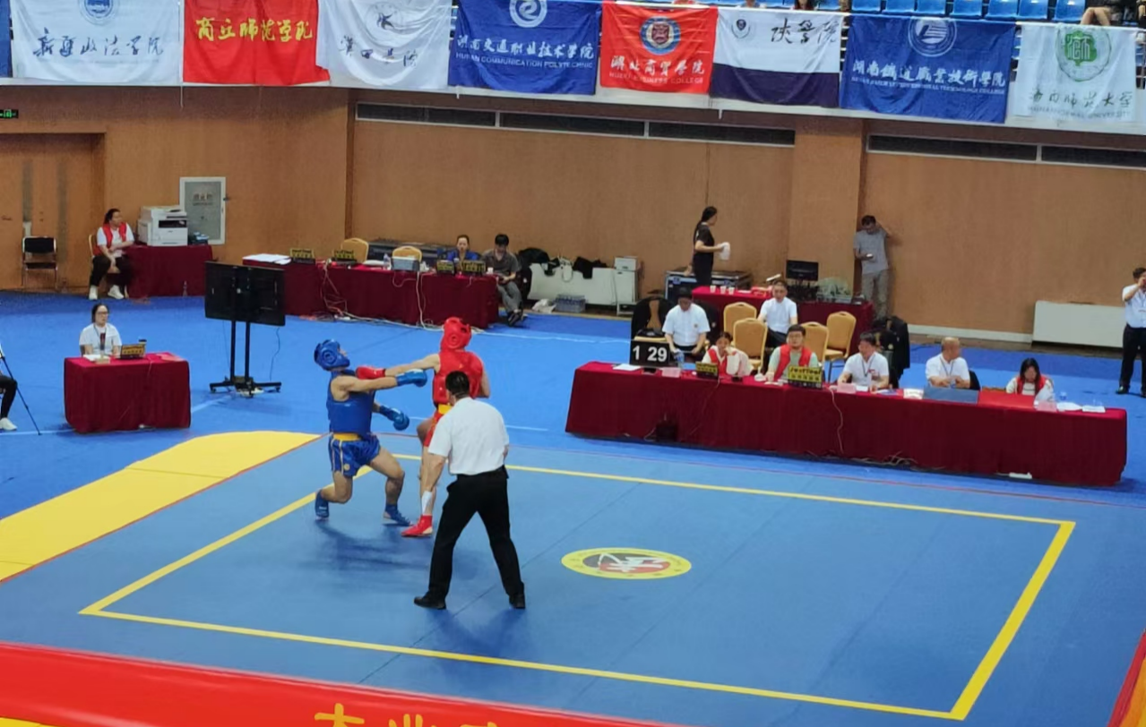 近日,由中国大学生体育协会主办的第8届中国大学生武术散打锦标赛在河北省迁安市举行,来自全国165所高校的1300余名武术散打选手参赛。pp电子官方网站体育学院(校本部)作为参赛单位之一,由邓方华教授、甄洁副教授担任主教练,率领由3名女队员和4名男队员组成的7人精英队伍参赛。