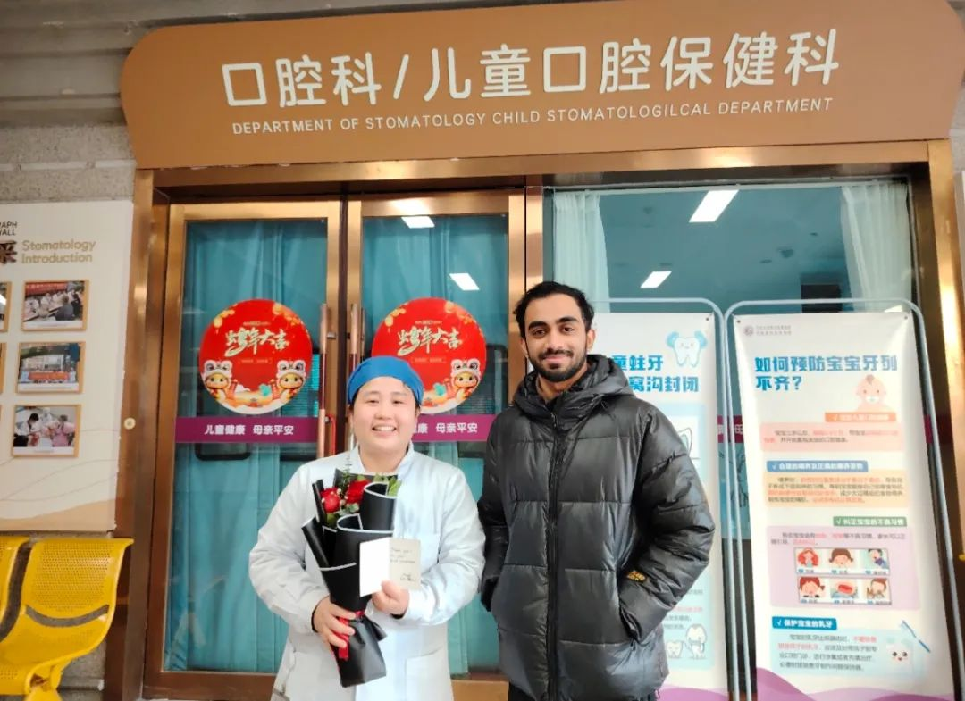 除夕,一位斯里兰卡国际友人被牙疼困扰了多日,身在异国他乡的他怀着忐忑的心情来到三附院口腔科寻求帮助,口腔科医护人员热心服务,英汉沟通无障碍,为他完成CT检查,并借助翻译软件为他详细讲解治疗方案,治疗解除牙疼困扰,收到他的感谢花束。