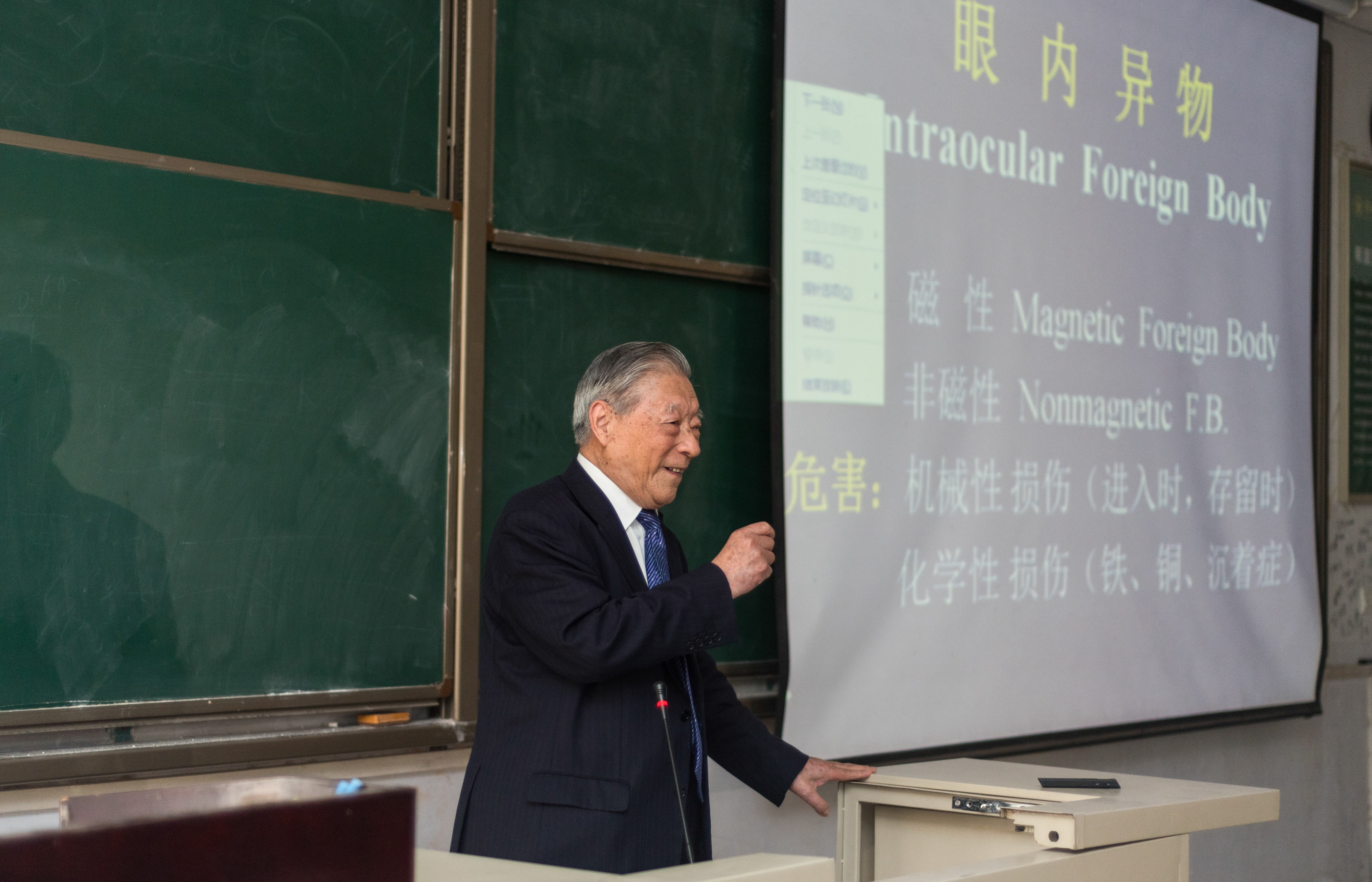 然而许多人并不知道,这位看起来似乎是“铁打”的老专家,其实是一位做过十多次手术的癌症患者。在最危险的一次肾脏摘除手术前,他把毕生积攒的120万元钱捐赠出来,建立眼科医学学术基金,用于资助和奖励年轻的医生们。手术成功后,他越发感觉到时间的宝贵。“有的病人是多远来等我好几天,等我上班,那我给人家解决不好,对不起病人。”所以,几乎每个白天他都在门诊、查房和教学中度过,晚上回到家后继续修改论文。每当有人对睡眠严重不足、身体过度消耗的他做法表示关心时,他总是笑着说道:“少活几年没关系,我已经活了99年了。我一定要抓紧时间报答祖国,了却自己的心愿。”这种严谨治学的态度,无私奉献的精神,令人高山仰止。