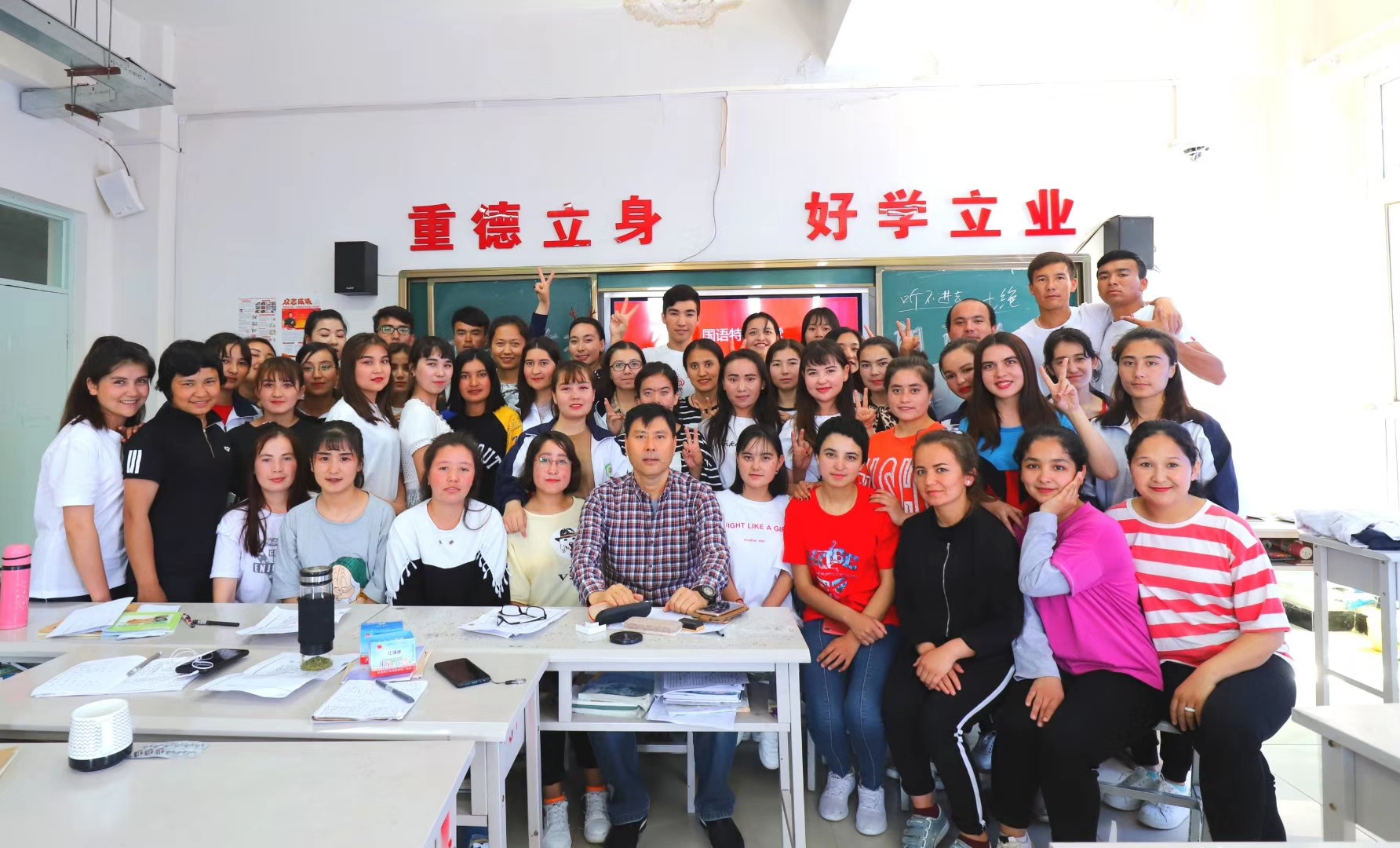在相处中,肖战峰发现部分学生汉语掌握困难,对中华民族的优秀传统文化也不够了解。为此,他变身“语文老师”,与几名援疆教师轮流上台,从拼音“a、o、e”开始讲起。余光中的《乡愁》、屈原的典故、中原大地的深厚历史……不仅被肖战峰带进课堂,也带到了同学们的心里。2019年五四青年节,肖战峰特意在国语课堂上举办了一场诗词朗诵会。“文化是根,我希望通过活动让学生们更加深刻地感受到中华文化的博大精深,增强文化认同感。”他解释道。