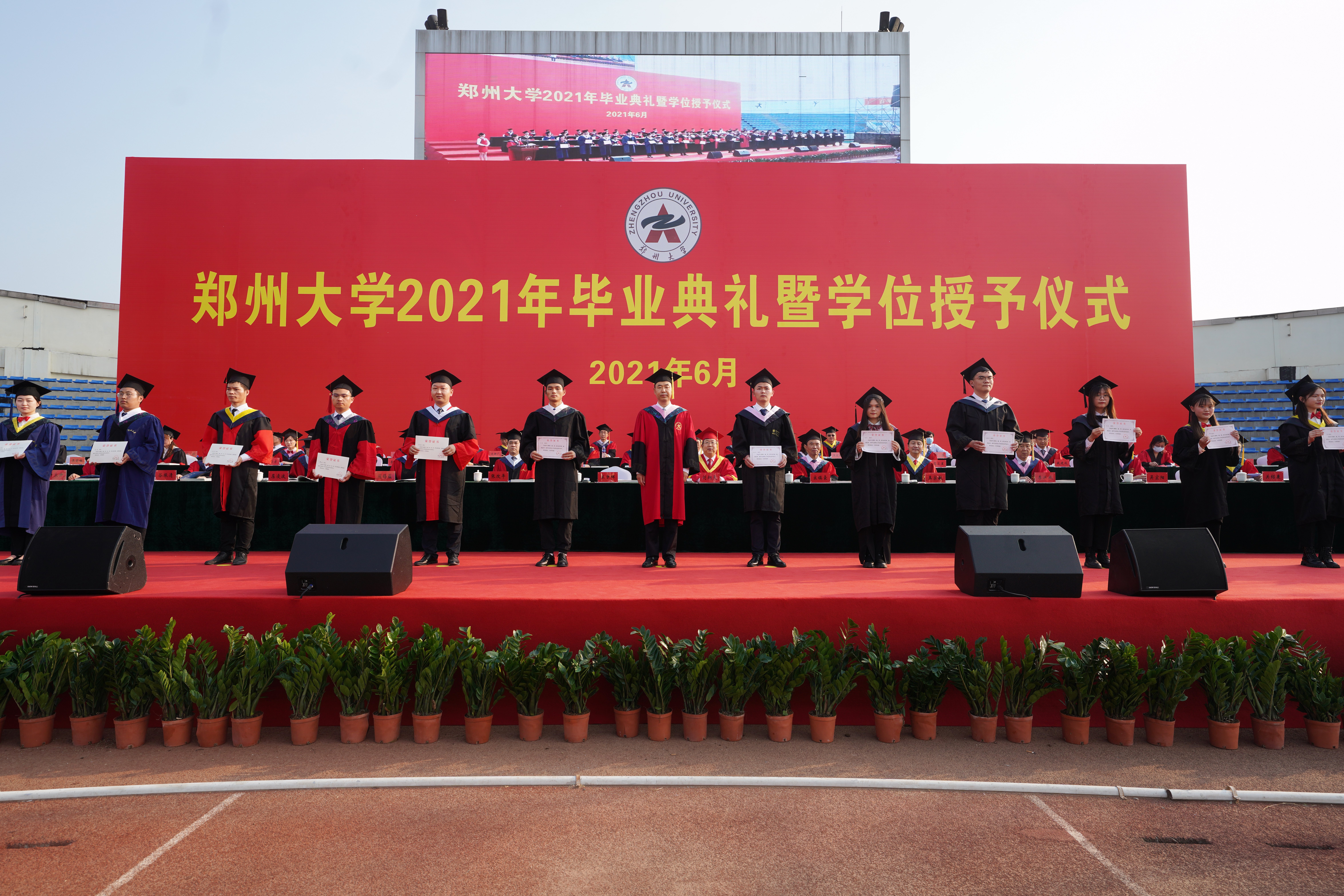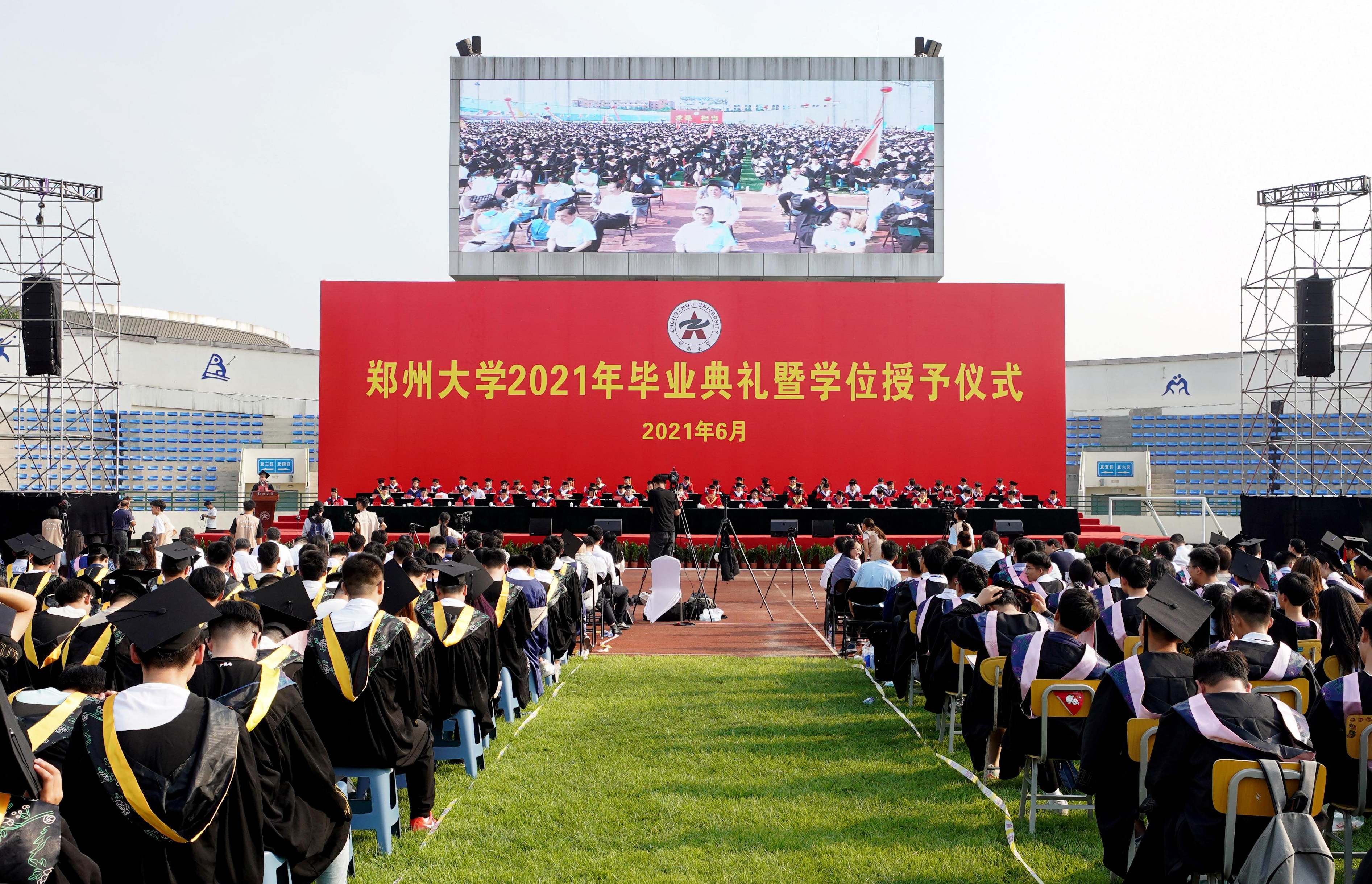 荷叶亭亭绿满塘,累累硕果满枝香。6月28日清晨,迎着初升的太阳、沐浴着清爽的晨风,pp电子官方网站1.8万余名毕业生身着学位服在体育场上有序就坐,一个个充满着收获的喜悦,共同见证完成学业的美好而庄严的时刻。 “从党史学习中汲取奋进力量,让青春在奋斗中绽放绚丽之花。”体育场四周的墙上张贴的一个个大红条幅,若如师长们一句句语重心长的教诲。“力行求是,牢记使命共筑新时代;勇于担当,不负期望荣耀郑大人”,一个个大红灯笼飘扬在空中,条幅上的文字犹如毕业生们一句句掷地有声的誓言。毕业季恰逢建党百年,pp电子官方网站2021年毕业典礼暨学位授予仪式隆重举行。