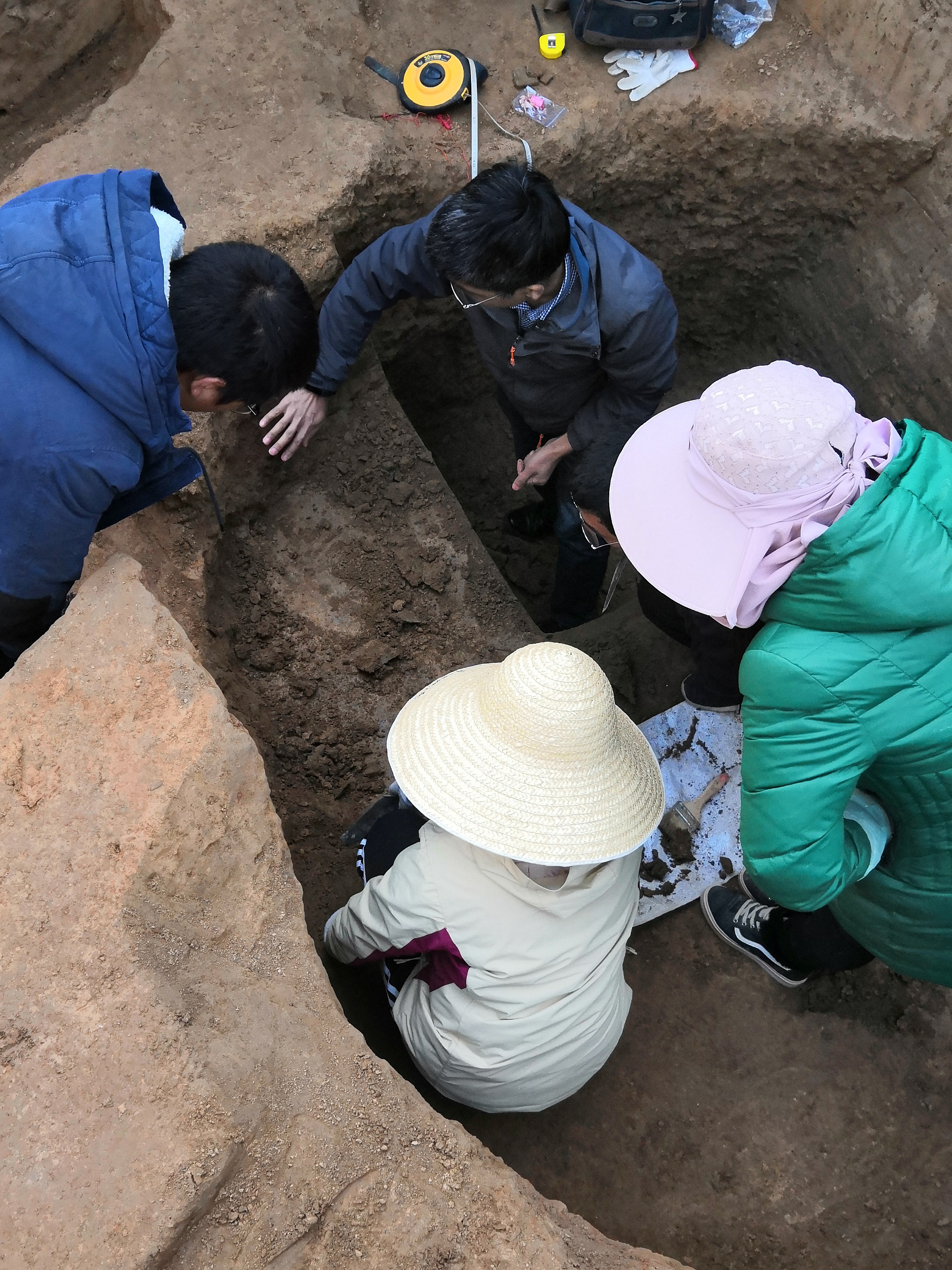 田野考古实习的生活简单而枯燥,然而,师生们把心沉入地下,视野回到远古,挥舞手铲,划破黄土,同复杂的遗迹现象战斗。这也是“灰头土脸”的生活,秋冬的风沙混杂着麦秸拍在脸上,人越来“土”,而探方中古代谜题的答案愈发清晰。师生们经历了酷暑与严冬,也逐渐习惯了踏霜而行、披月而归。利用晚上和休息日,师生还组织系列讲座和交流活动。来自台湾的2018级考古专业的学生王若琪开心地说:“2020年秋天,我进入官庄遗址考古基地开始为期数月的实习。首次走出书本,进入真实的田野环境,这份兴奋与悸动至今仍深深烙印在我心中。从炎炎夏日到瑟瑟寒风,我与同学们从初次拿手铲刮面的青涩陌生,到能顺利区分遗存并独立完成工作;下工时人人面颊均充斥着疲倦,可眼中闪的灿灿光芒却是倦态无法掩盖的,因为我们都热爱着考古。我渴望透过探索文物去感受历史的温度。正是这个温度,不仅触动了我的生命,也成为就读考古专业的初衷。”